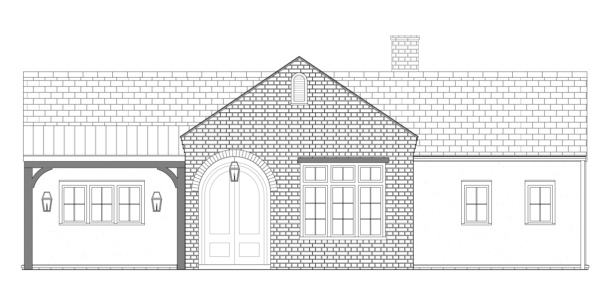 tan stone veneer gray slate roof cream stucco tan fascia and gutters on hillside