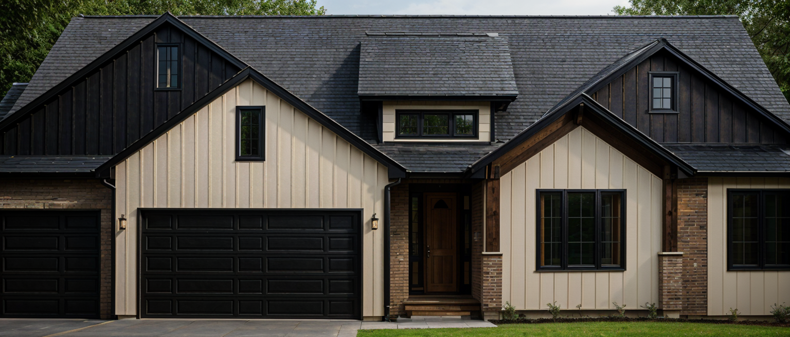 change camera angle to view the building from eye level render with realistic lighting at night with people having a party inside and some snow falling in winter