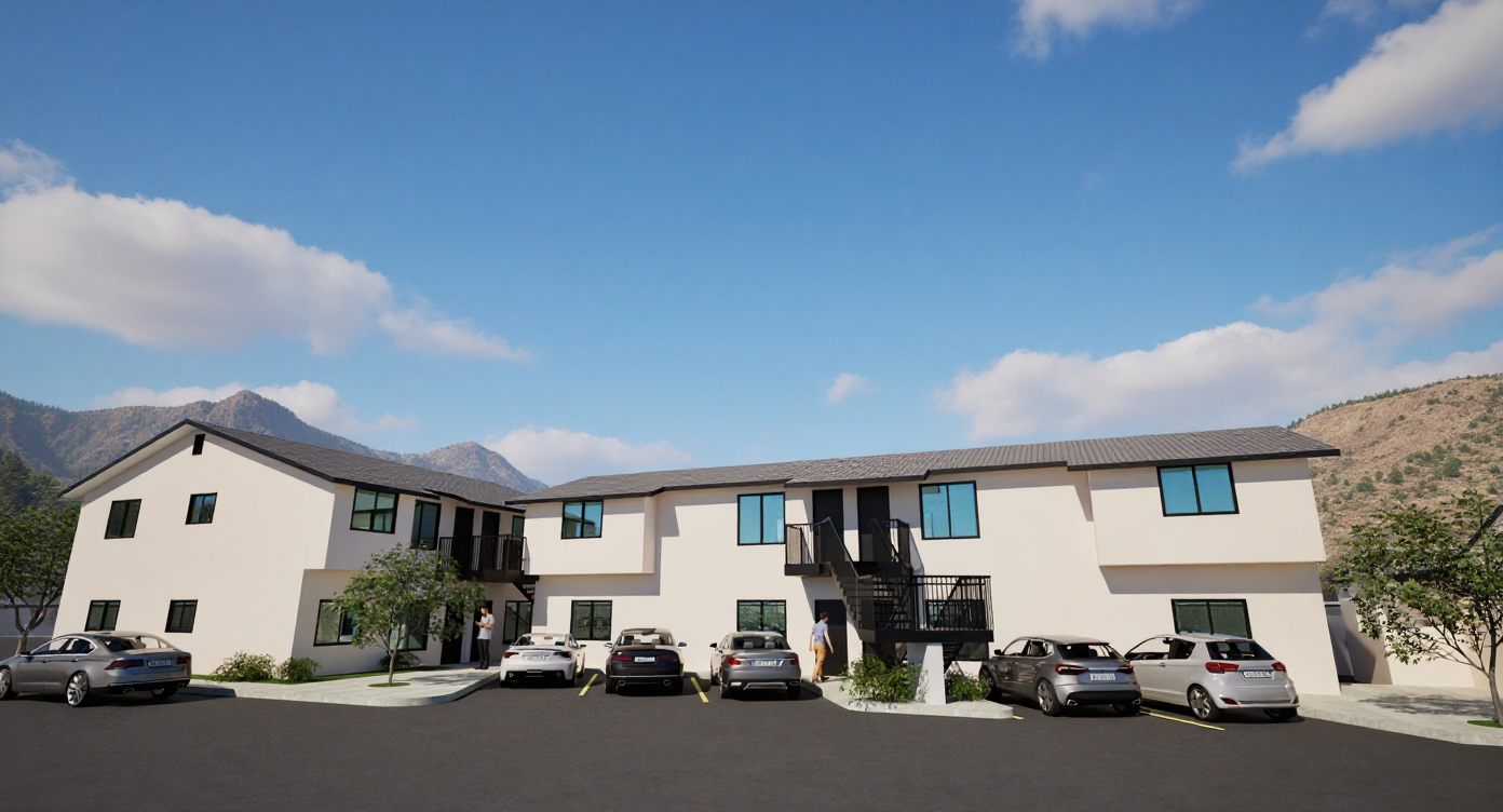 exterior shot a rustic idyllic countryside scene featuring an old brick farmhouse nestled amid lush greenery the house is built with rustic red brown bricks contrasted by earthy green wooden shutters surrounding the house are verdant grass lawns and tall majestic trees in varying shades of green from deep forest to vibrant lime the sky is a mix of soft grays and subtle blues with fluffy white clouds creating a serene and peaceful atmosphere the overall mood is tranquil and nostalgic evoking a sense of timeless beauty and rural charm architecture