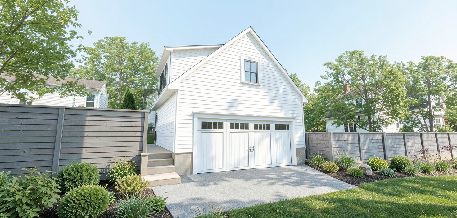 realistic bright white siding wooden gray fence residenital neighborhood alley