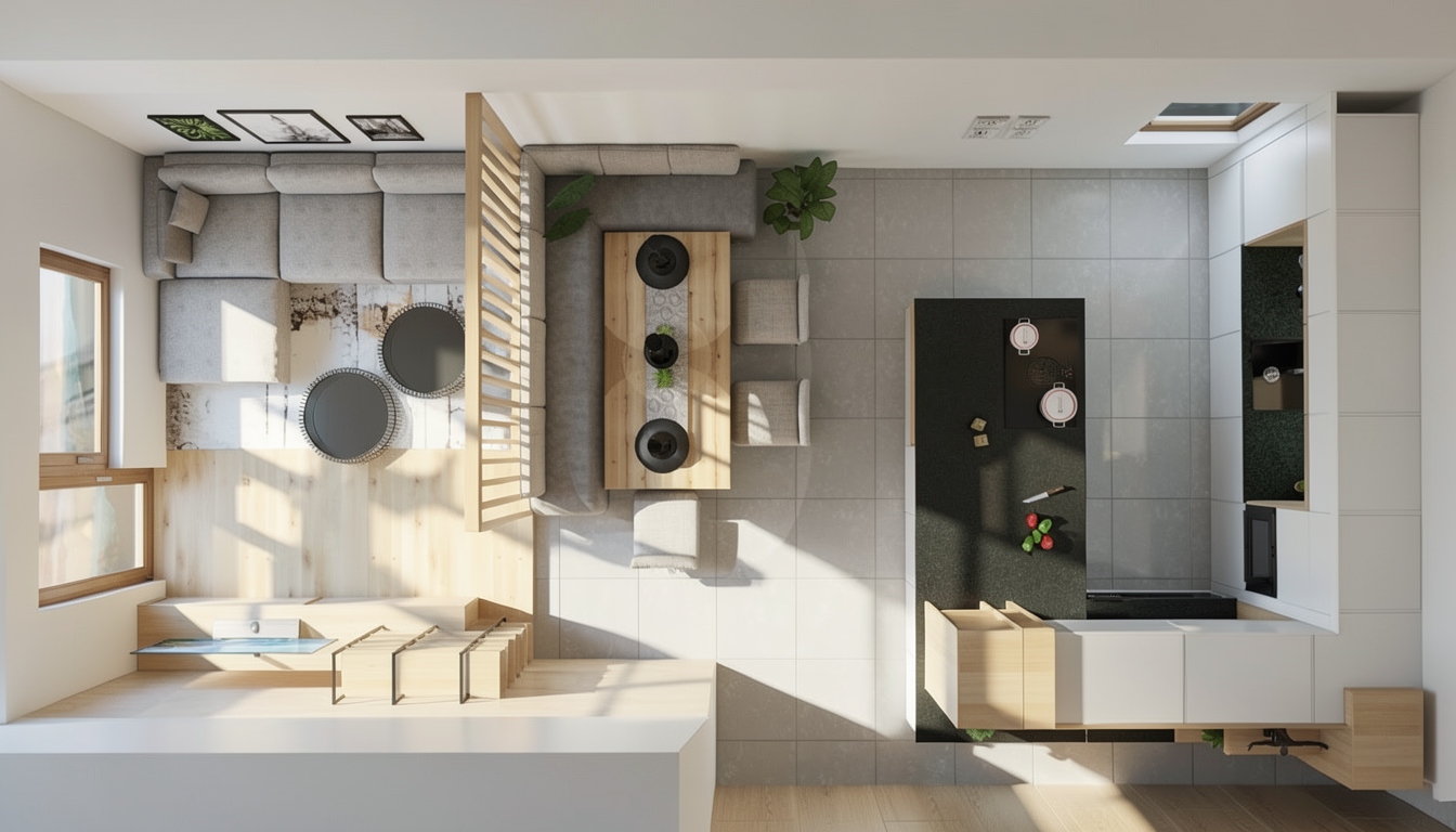 create a realistic render of this kitchen