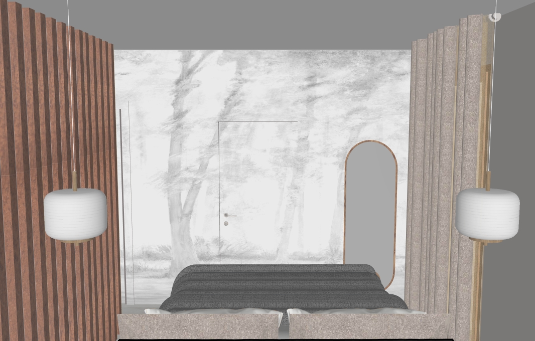 do not change anything do not change materials mantain everything the material of the wallpaper should be lighter the mirror s frame is made of wood