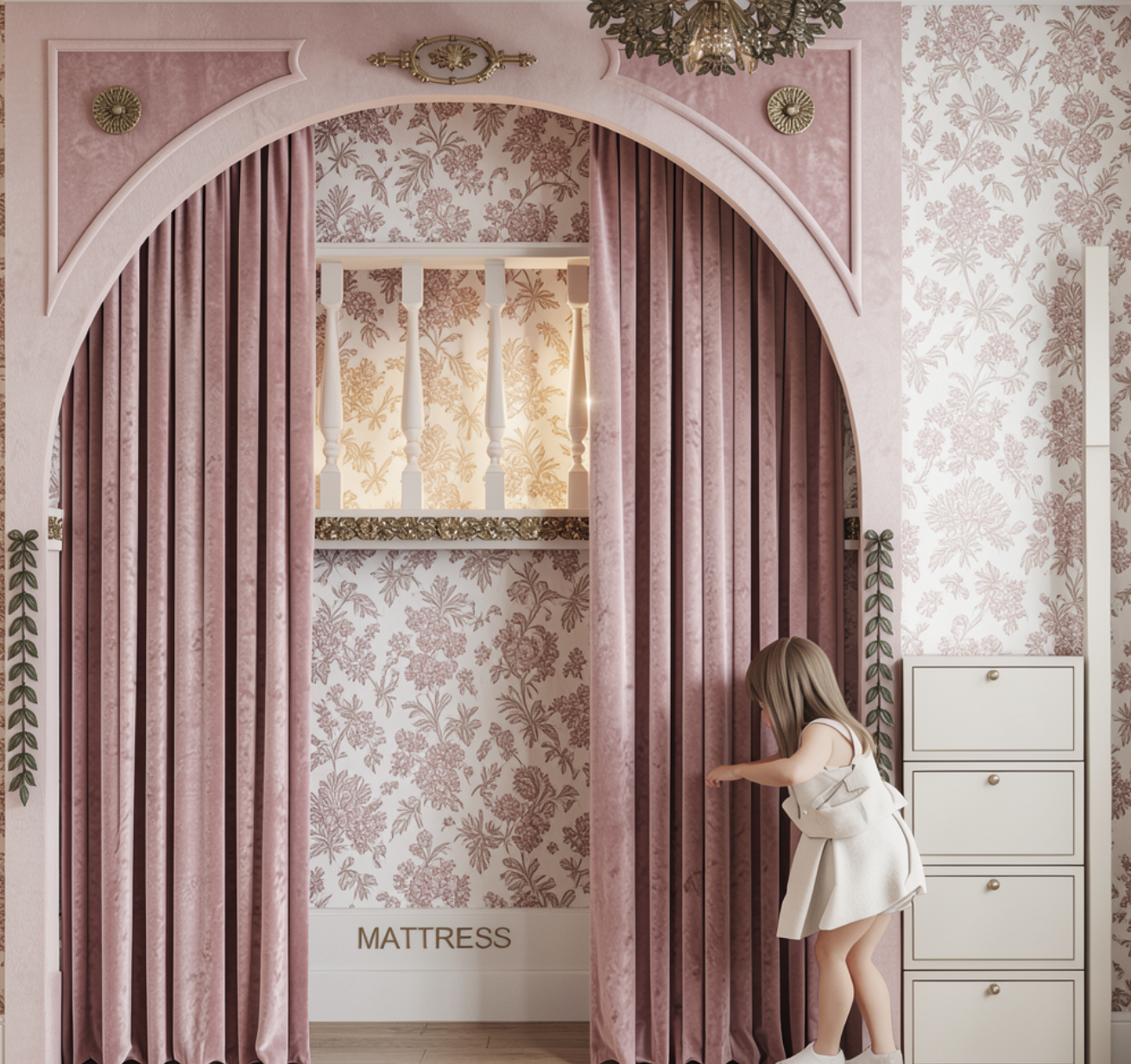 remove the embellishments on the main arch add this wallpaper to the back wall https cole and son com products reverie variant 43330769813746