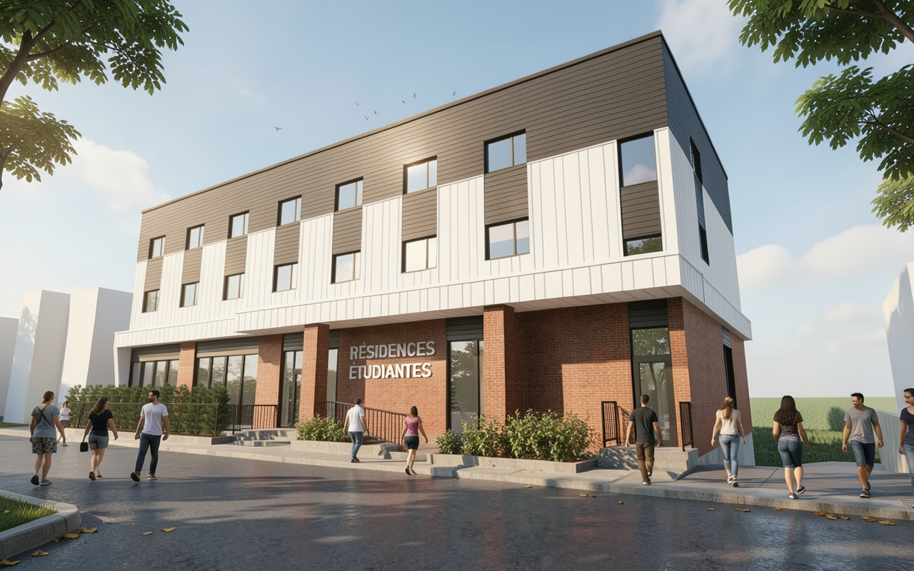 a small modern room with a sleek minimalist design the exterior features vertical wooden panels in a soft light oak color contrasting with the dark gray frame of large windows inside there is a plush light gray sofa facing a flat screen displaying vibrant digital content the back wall is dark almost black enhancing the digital display s colors a simple cozy office setup with a modern black desk lamp and a chair with wooden accents sits beside a warm wooden door the ambiance is calm and serene with soft natural lighting creating a welcoming atmosphere place in a modern small garden