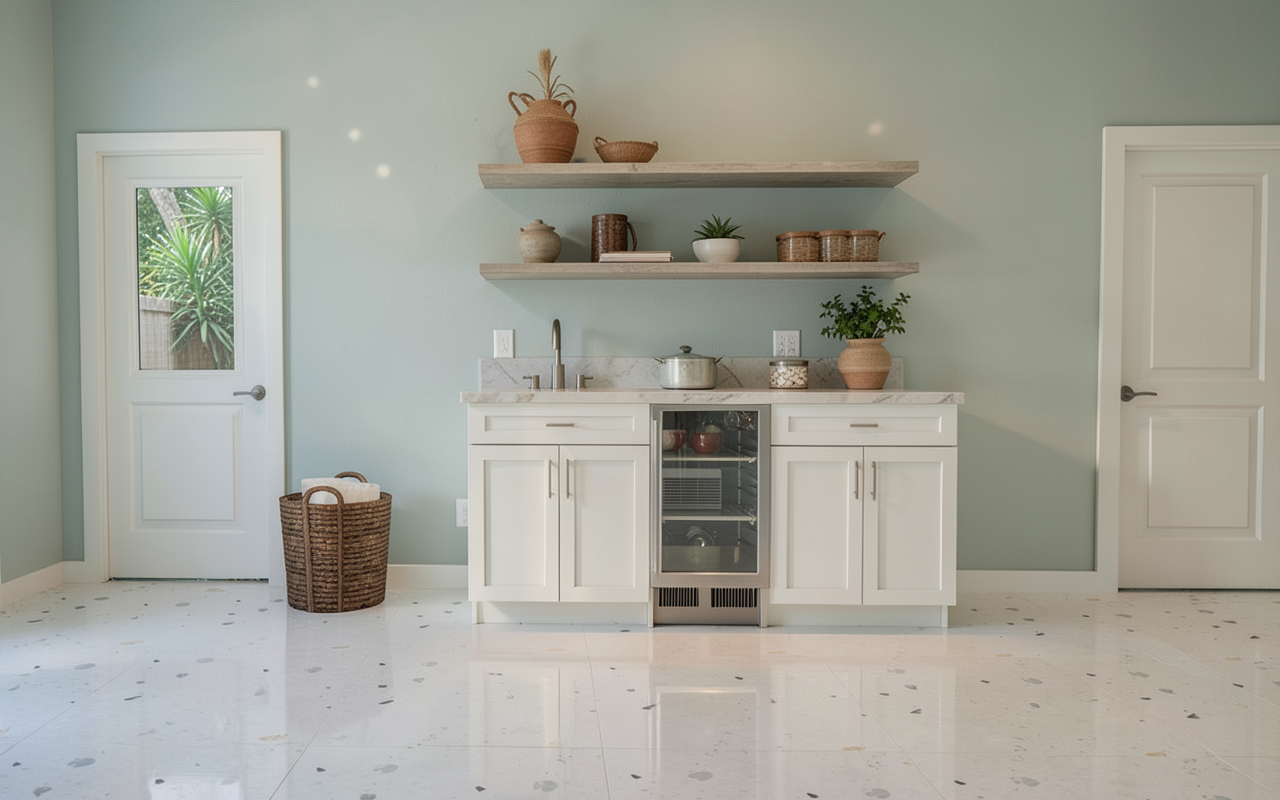 pool house with white cabinets cabinets