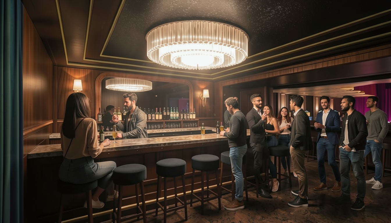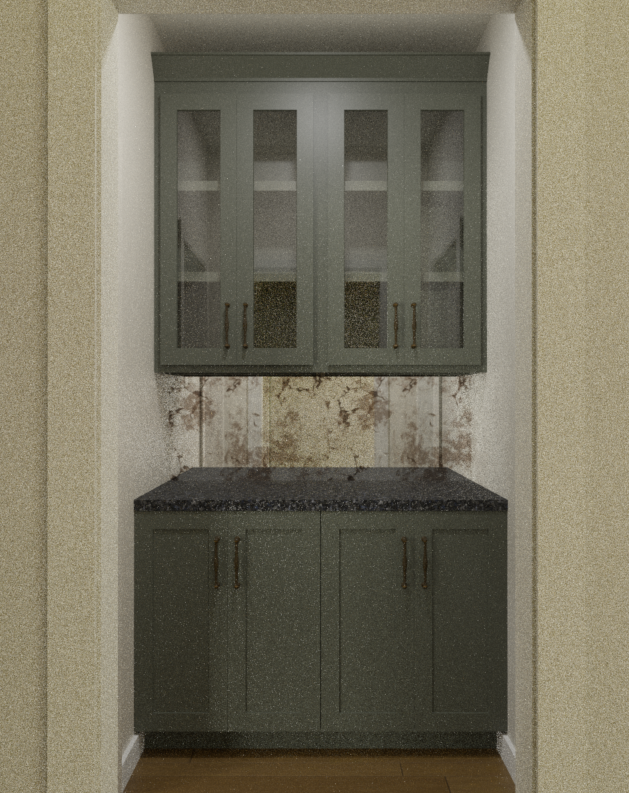 add soft lighting and shadows and add only a few wine glasses inside cabinets