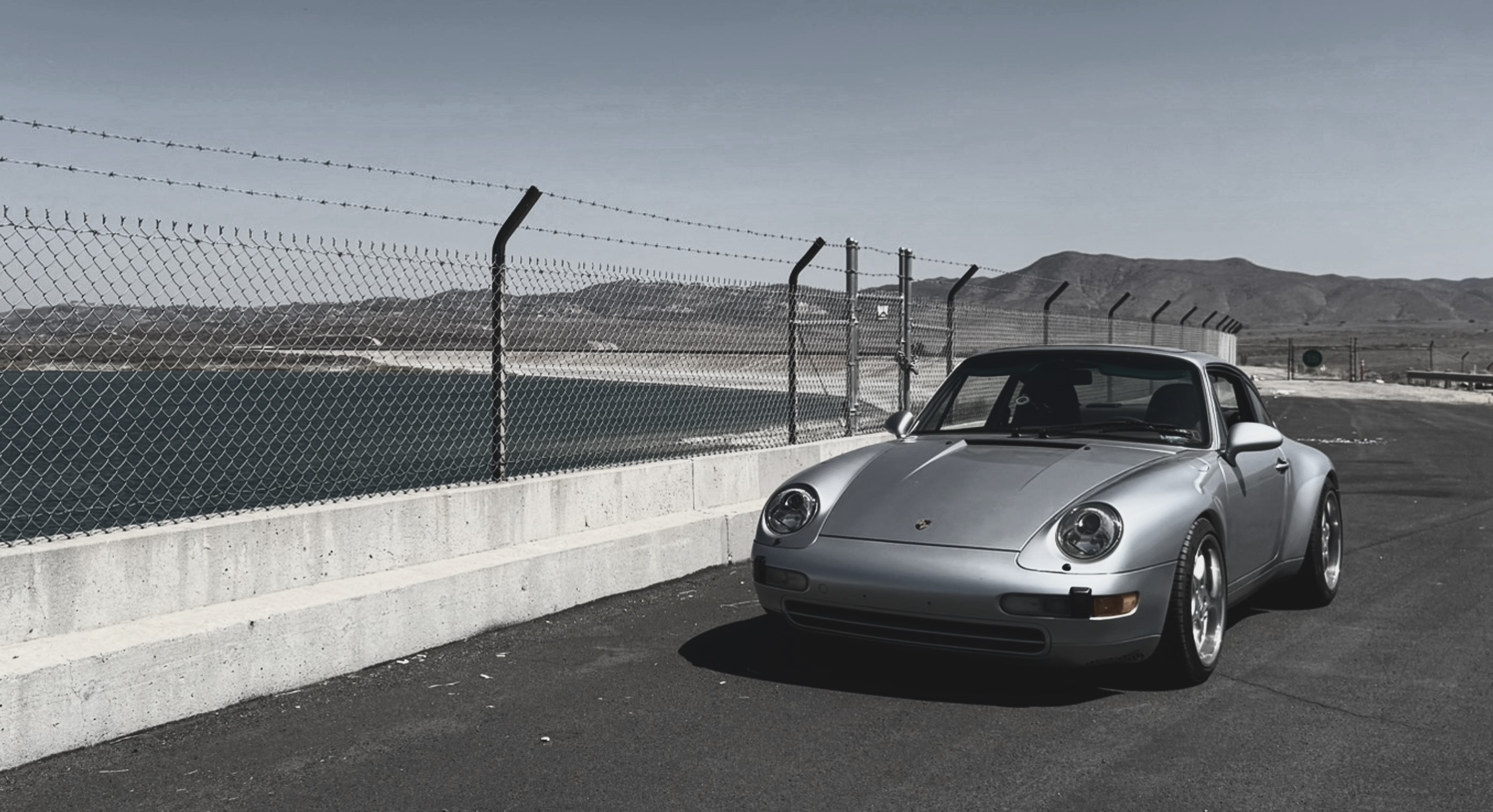 remove the chainlink fence and concrete barrier and change to landscape change the background to pacific coast highway with california palm trees and high noon california summer weather