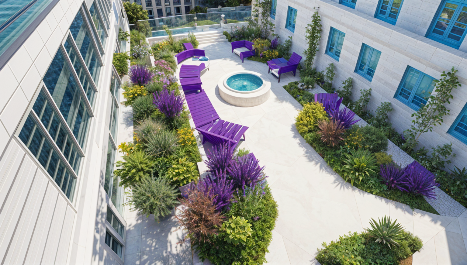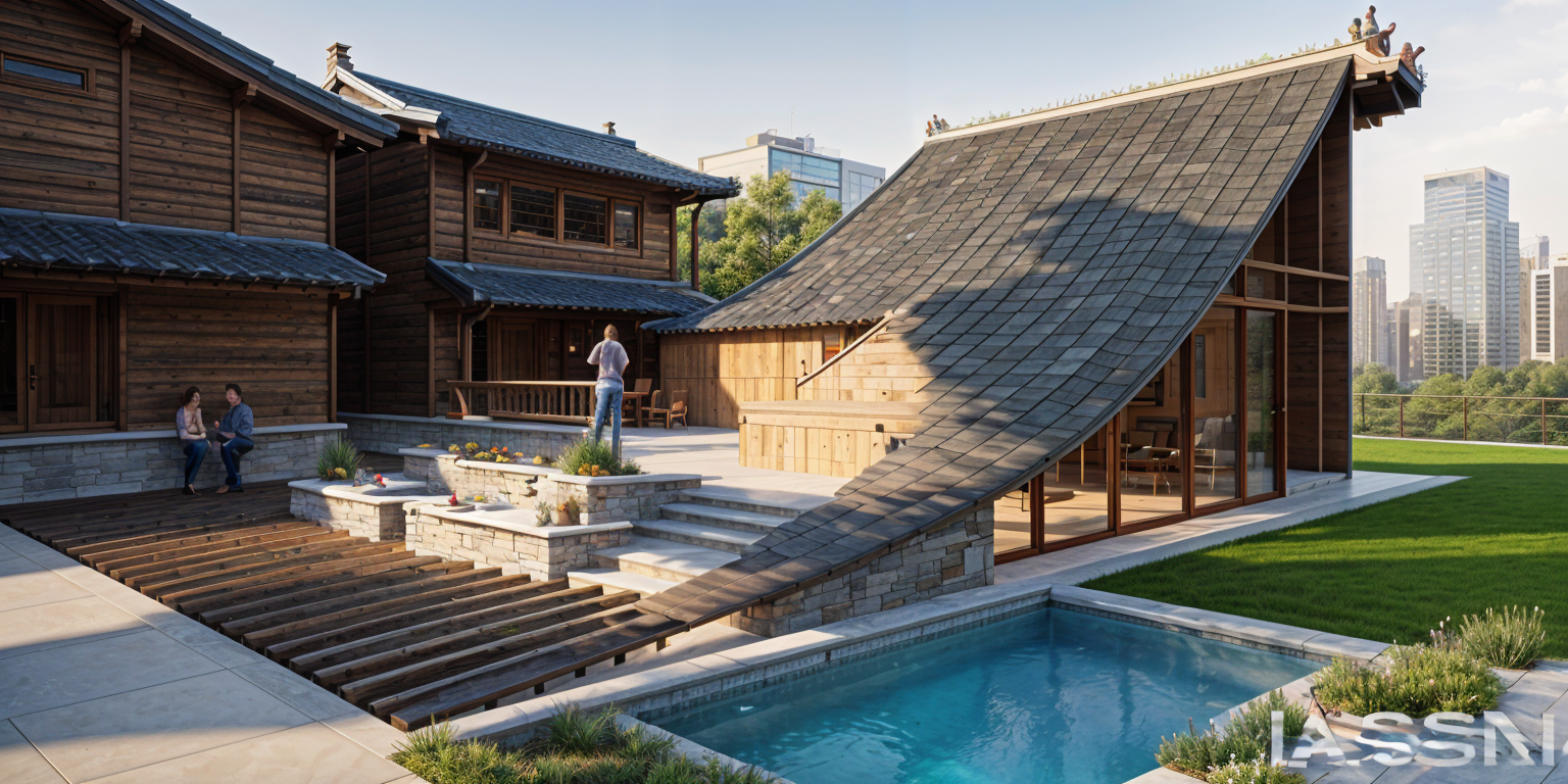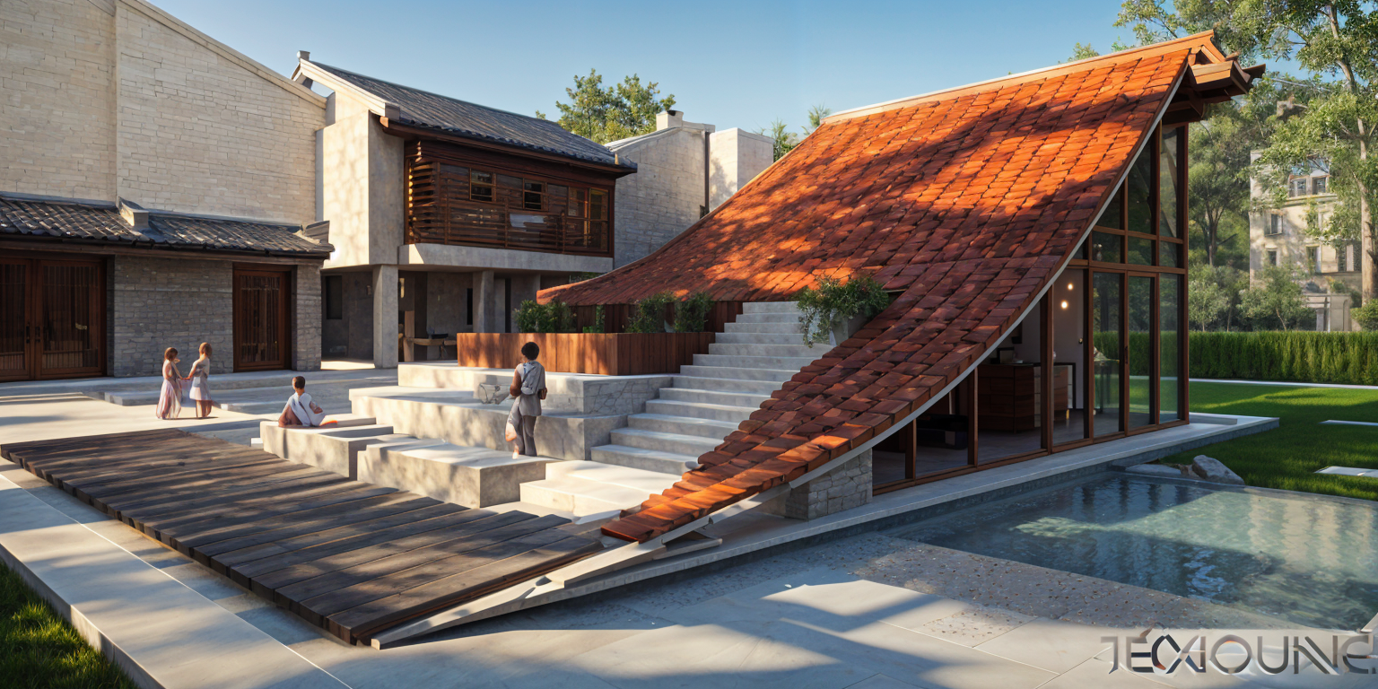make rendering photorealistic keep architecture materials and colors the same add driveway and walkway bushes and low mountains in background