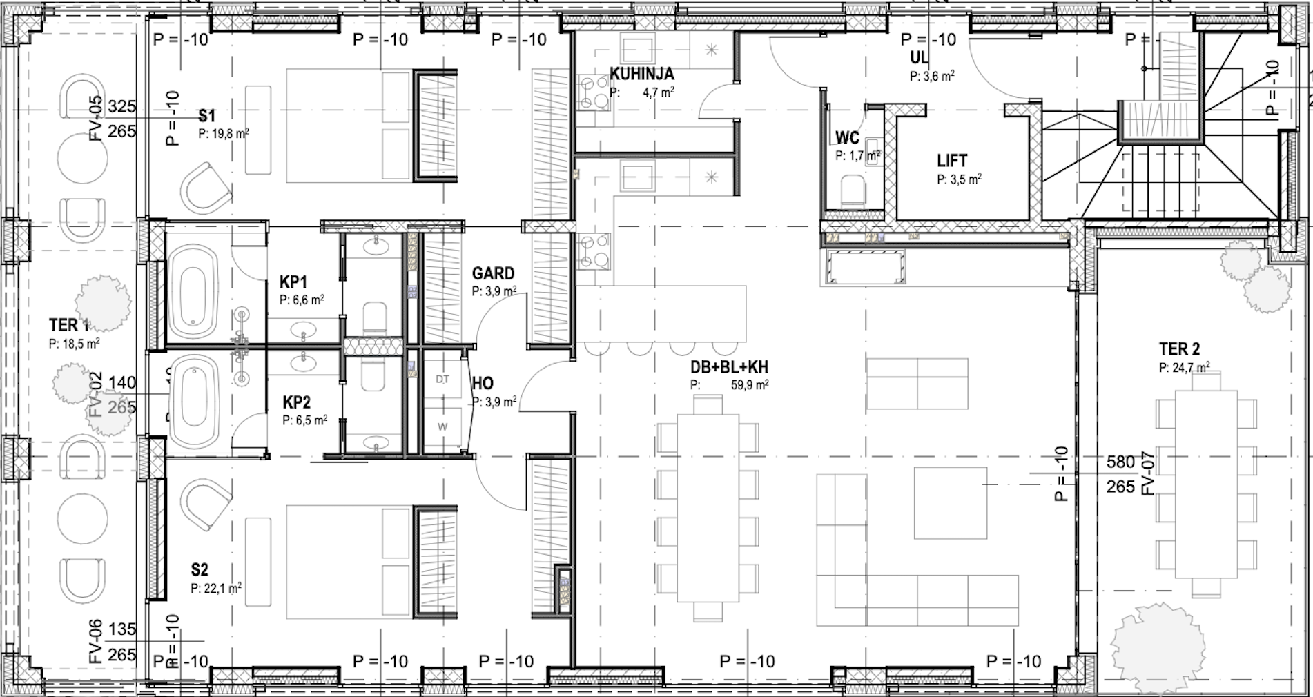 convert this floor plan into a realistic isometric 3d view of a full house show the space from an elevated angle with furniture walls and details visible change some details in room there is all glass balcony there to the terrace use the same furniture as shows on the plan do not change the orientation of the floorplan