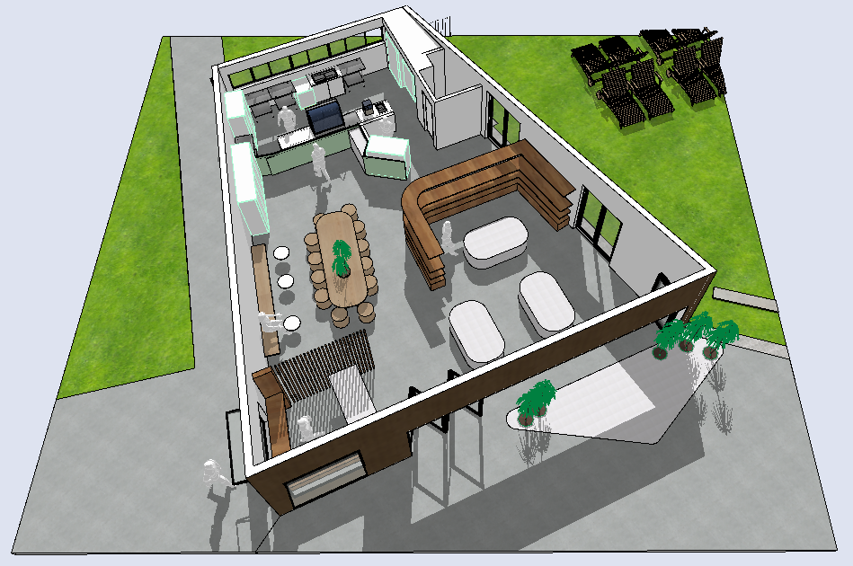 render in style of https www choirender com punchbowl childcare centre keep black outlines of objects but make very thin
