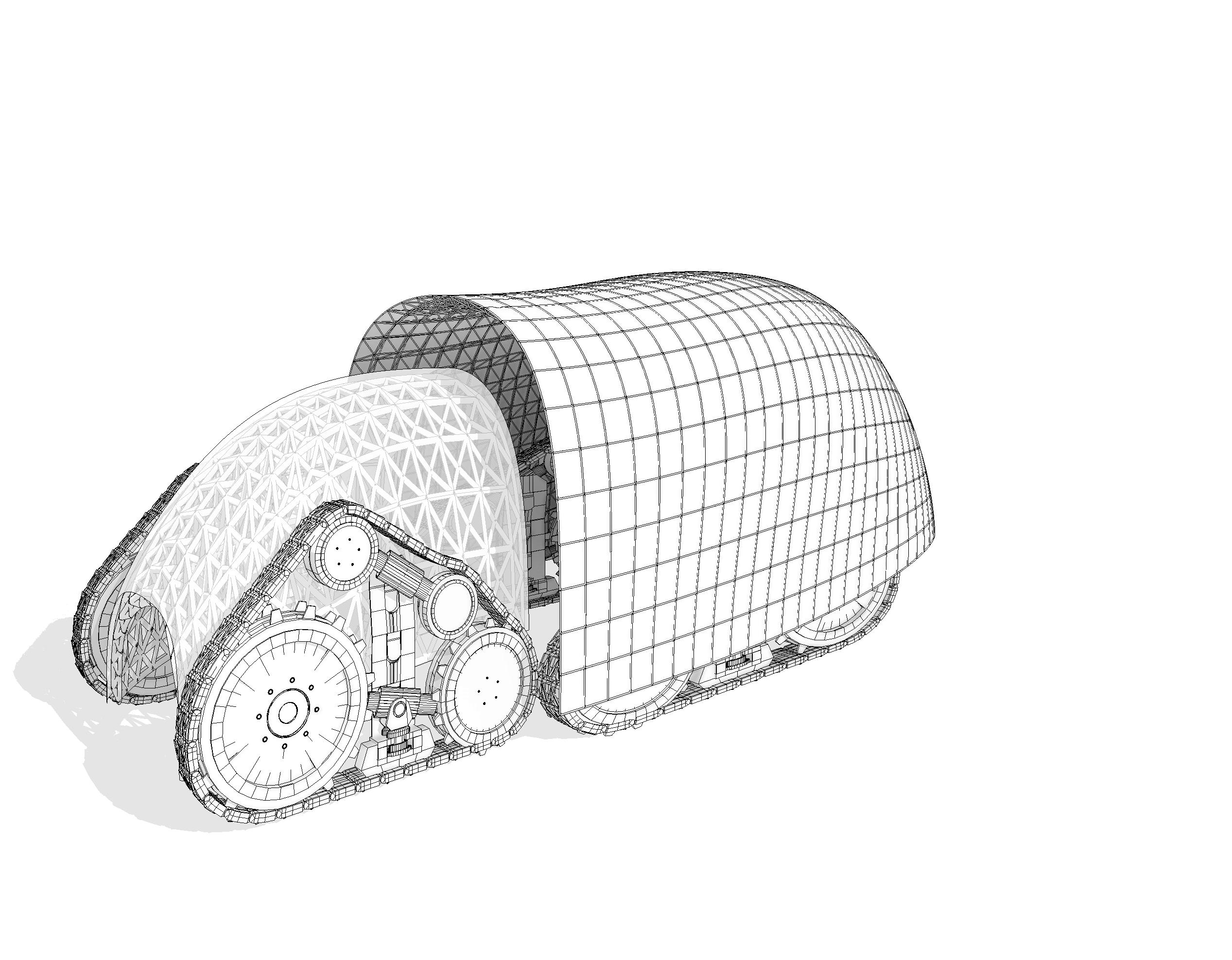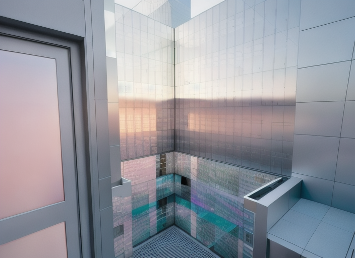 exterior shot create a conceptual architectural visualization structures inspired by the shed in hudson yards manhattan the cubes should appear as translucent shell like forms with visible structural framing along their bases and edges suggesting retractable or telescoping motion