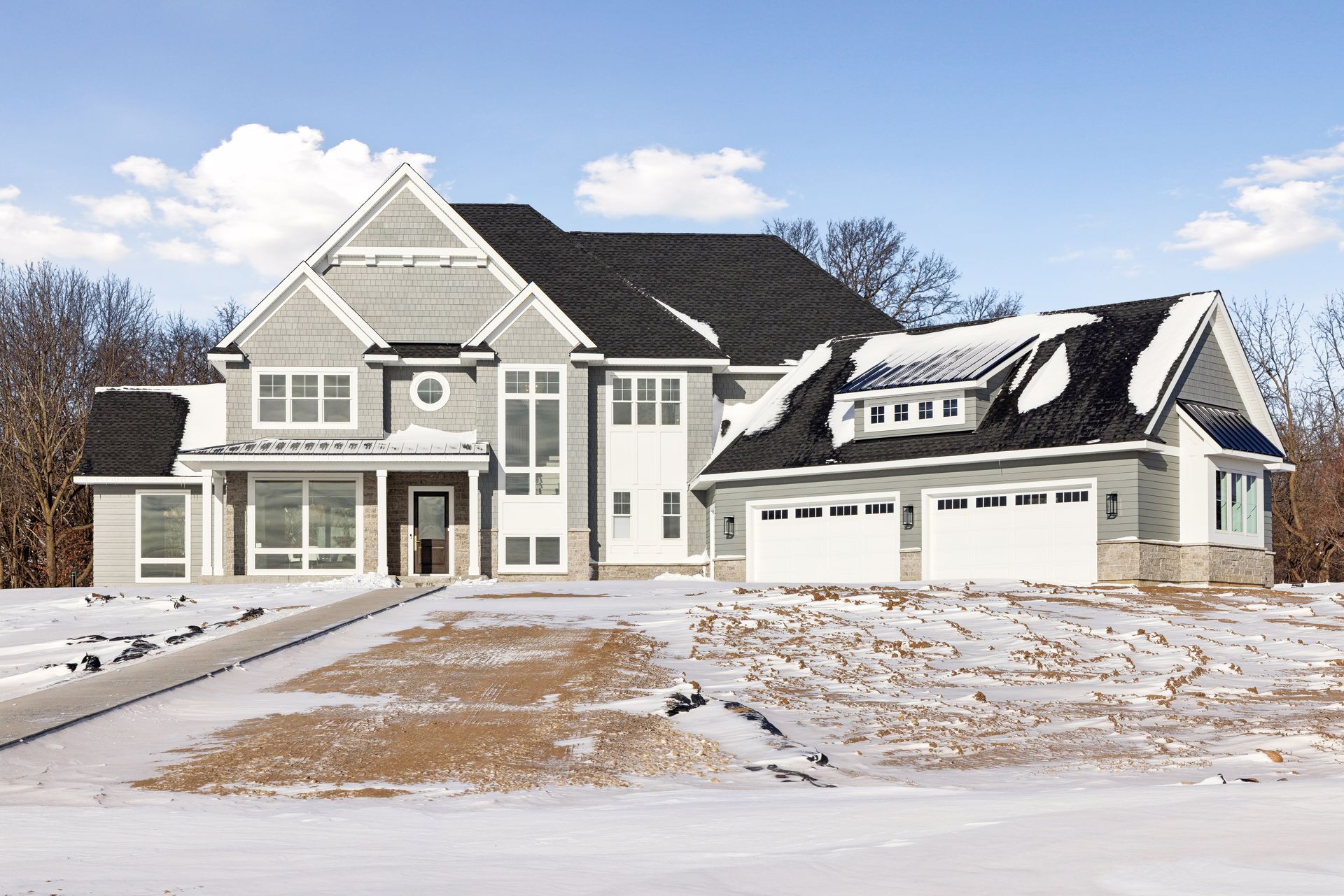 update to spring removing all snow and adding green grass and leaves on trees with minnesota landscaping in front of porch