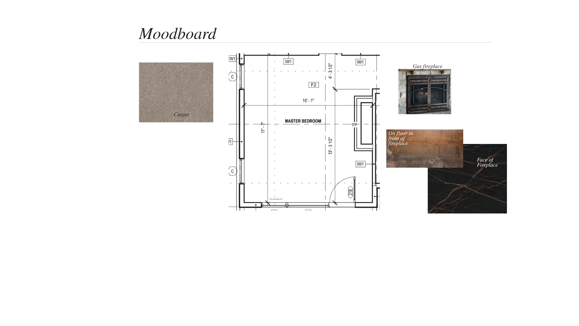bed on opposite wall of fireplace use fireplace wall material to go floor to ceiling black windows light brown tongue and groove accent on the ceiling tile on the floor not as a hearth