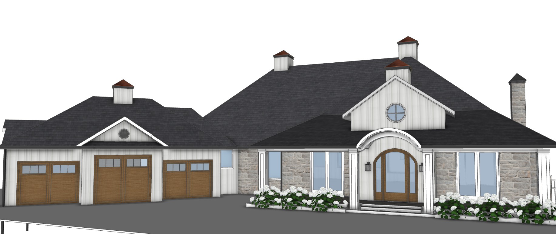 pacific northwest backdrop pine trees driveway should be exposed aggregate very fine