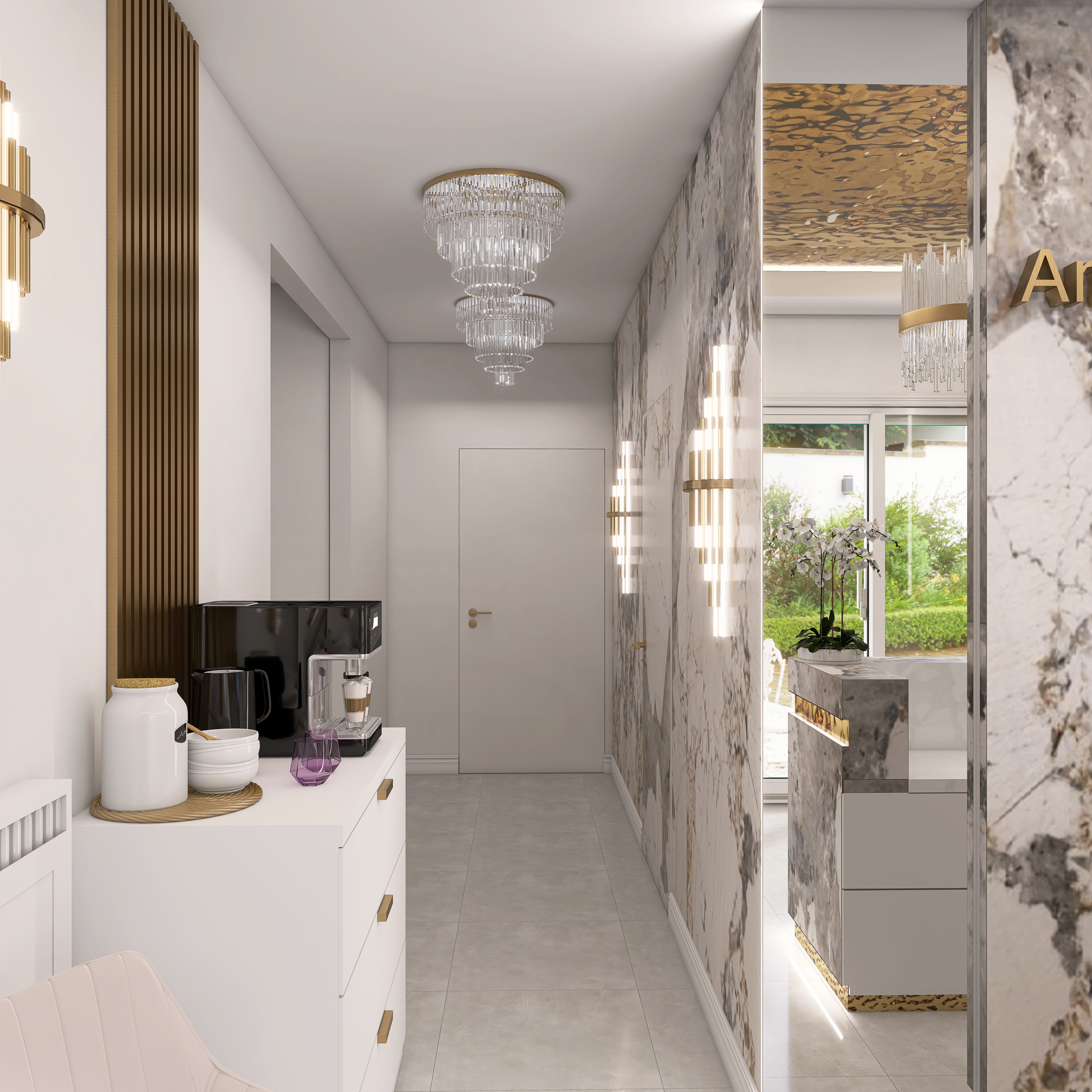 nic tutaj nie zmieniaj zostaw tak sam ostro zdj cia te same kolory wszystko zostaw bez zmian jedyne co zmie to lekko pod wietl napis na cianie delikantym ledem i niech lampa nad recepcj leciutko b dzie wieci