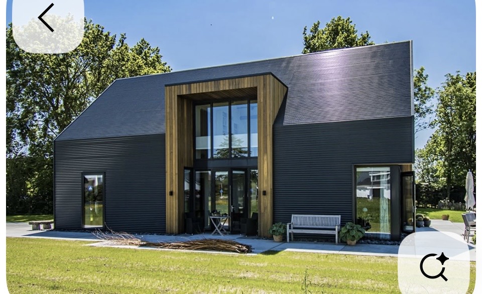 change the black exterior to vertical black steel siding and roofing