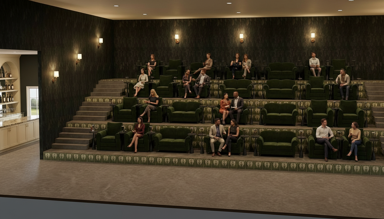make the ceiling a dark brown and take away the cabinets on the front of the bar and put stools to sit at