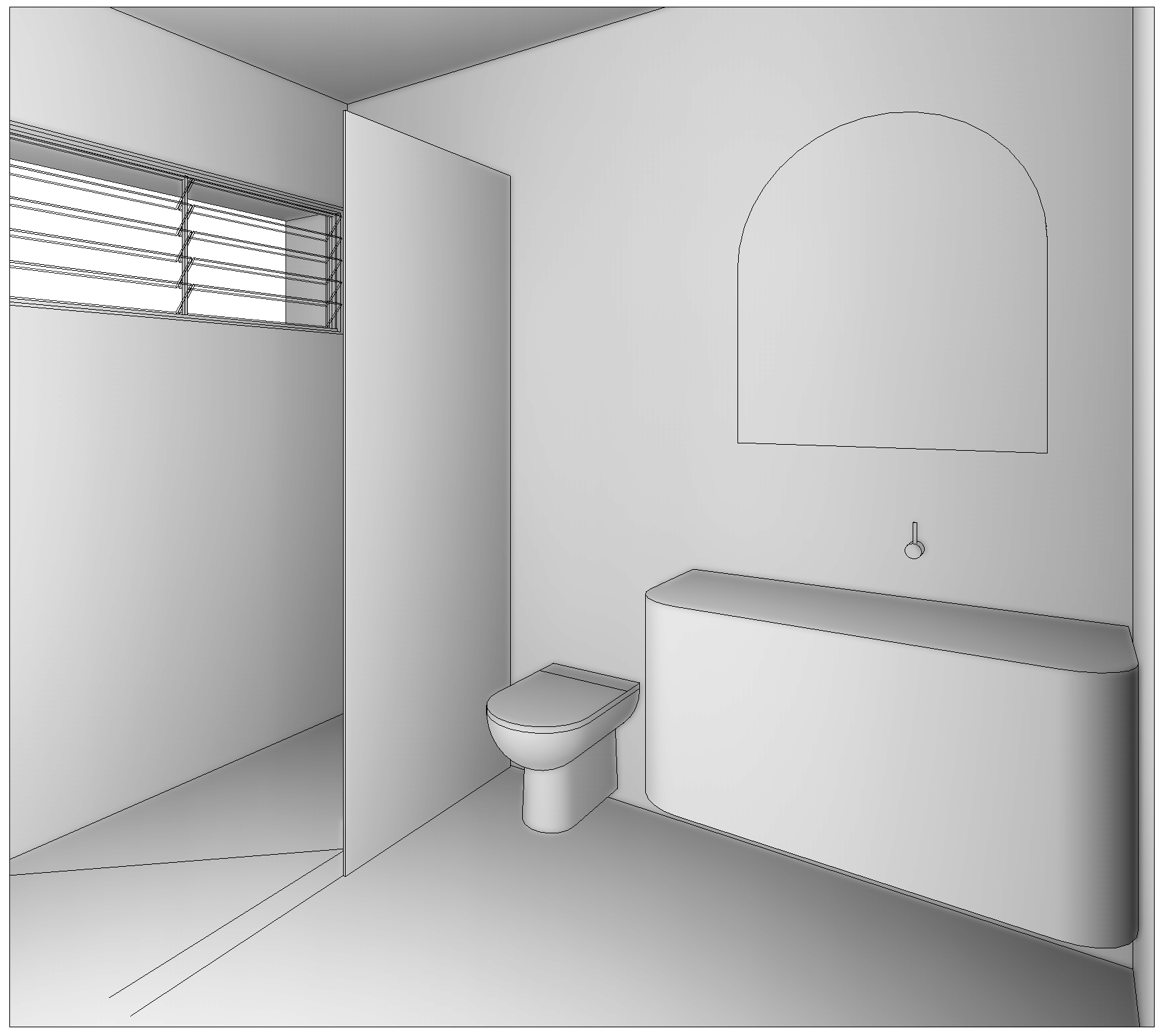 these changes are really great please change the tiles the floor tile and the wall with the window in it should be large format travertine the other walls should be vertical subway formate travertine make the shower area and bathroom floor seamless so there is no step or hob make the cabinet a light oak finish but leave the benchtop as white quartzite
