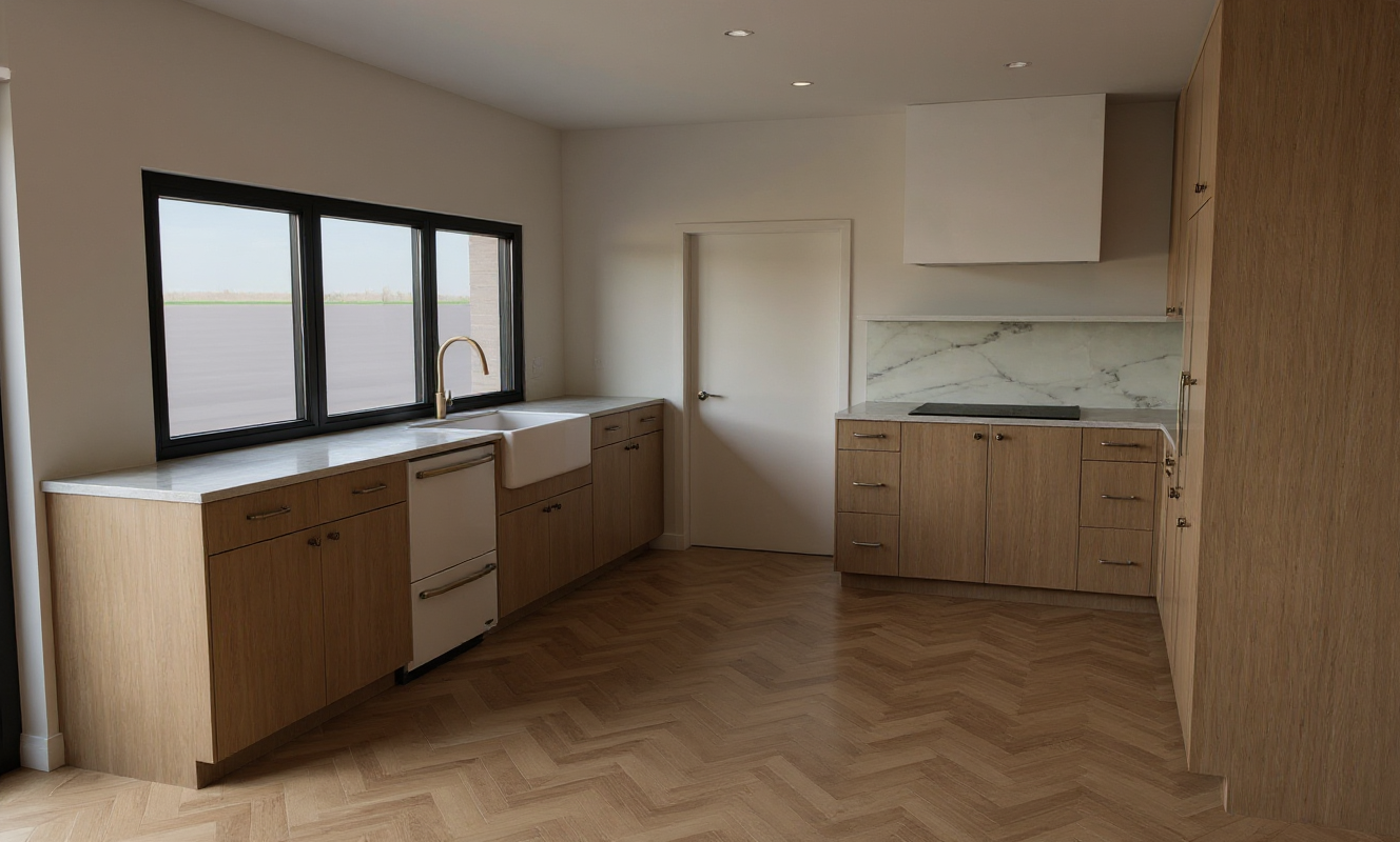 realistic rendering manicured lawn cloudy sky wooded background simple landscape