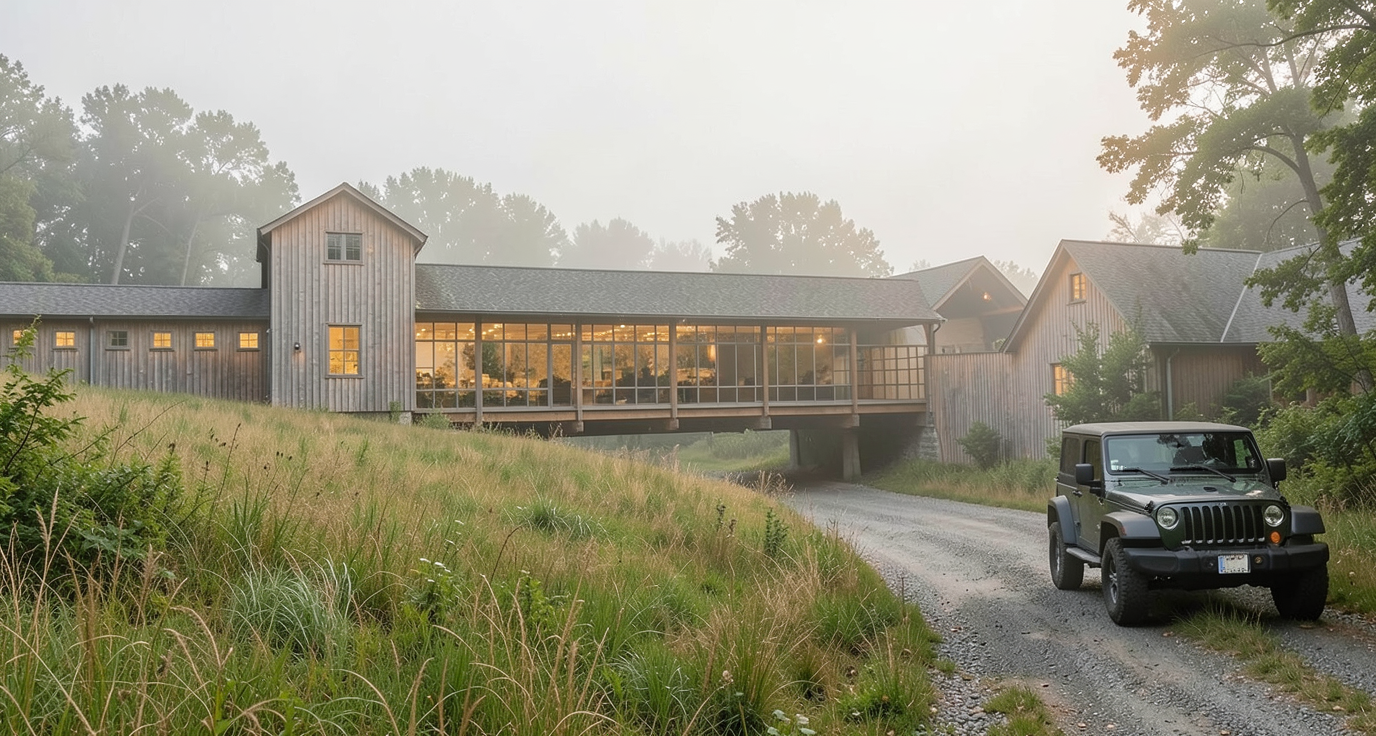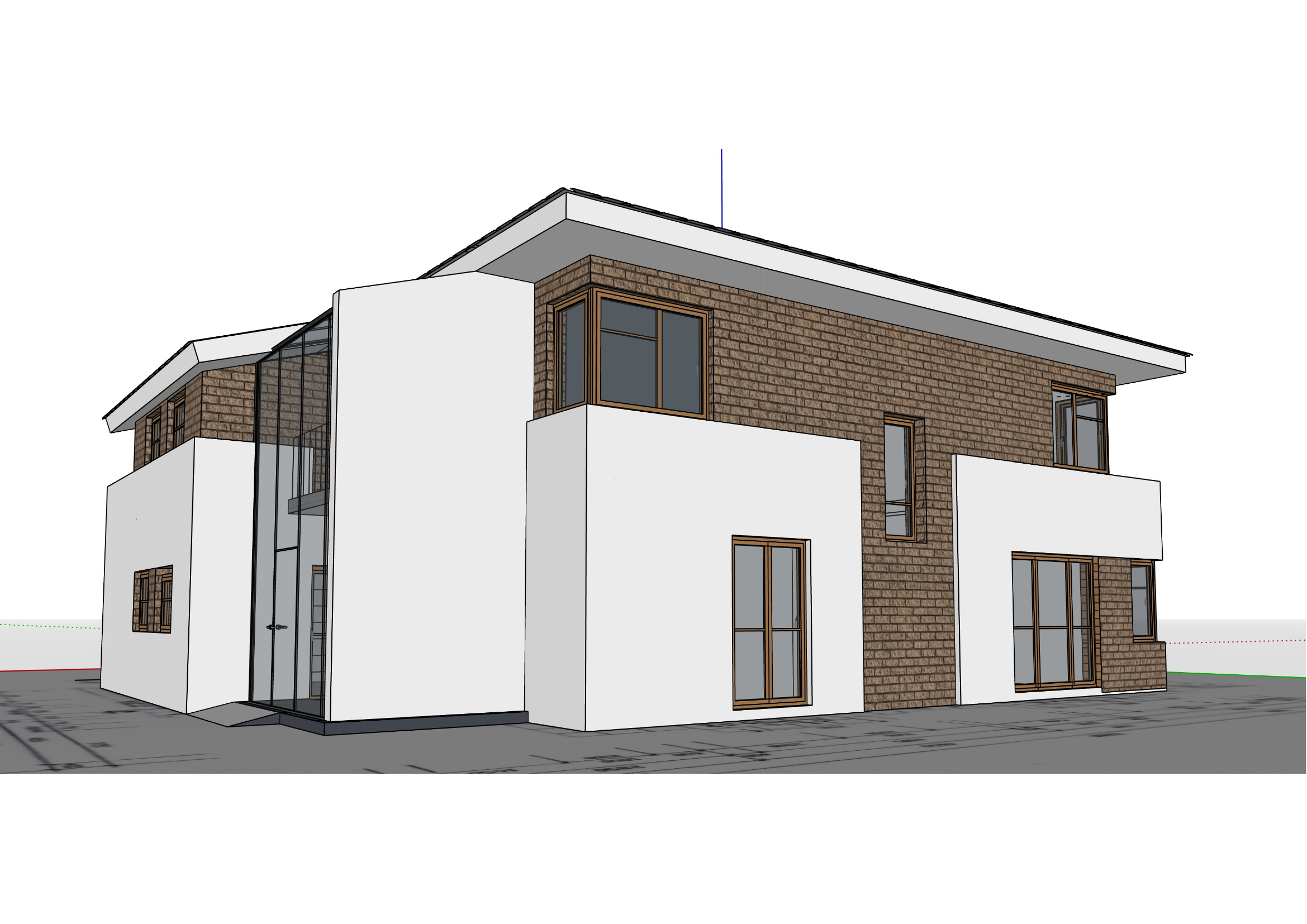 ultra photorealistic architectural visualization based exactly on the provided png reference strict preservation identical camera angle perspective and framing exact building geometry and proportions no redesign no added or removed elements preserve facade composition and window placement exactly maintain exact proportions of glass atrium and roof geometry architecture description modern two story family house with strong horizontal facade composition key features upper floor fully clad in warm brown brick lower floor in smooth white plaster volumes dominant corner window with wooden frame narrow vertical window detail visible glass entrance atrium on the left side clean minimalist geometry with sharp edges atmosphere luxury rain scene light rain or freshly wet environment wet surfaces across ground and facade base reflective pavement with subtle puddles fine rain streaks in air cinematic not heavy soft mist humid atmosphere calm elegant premium mood lighting podve er hlavn efekt exterior cool blue hour ambient light after sunset soft diffused sky illumination slightly darker environment interior warm light 3000k 3500k clearly visible through windows and atrium fully furnished modern luxury interior light spilling outside onto wet ground kontrast tepl interi r studen exteri r kl ov vizu ln efekt glass windows realistic reflections on wet glass mix of interior visibility exterior reflections sky environment subtle raindrop streaks on glass surfaces physically accurate transparency and refraction materials rain enhanced realism brick facade darker tone when wet richer contrast enhanced texture depth white plaster slightly darkened by moisture soft reflective quality wood frames deeper tone wet effect subtle satin reflections ground wet concrete stone paving reflective surface with puddles mirror like reflections of lights and facade metal trims subtle reflections realistic wet highlights environment minimal clean surroundings wet ground reflecting building lights no people no cars optional very subtle vegetation darkened by rain camera eye level 1 6 m focal length 28 35mm natural perspective no distortion slight cinematic depth of field render settings 8k resolution ray tracing on global illumination on high reflection accuracy physically based rendering pbr realistic light bounce from wet surfaces post process cinematic luxury cinematic color grading contrast warm interior vs cool exterior soft glow bloom on interior lights subtle vignette strict geometry lock preserve facade exactly no structural changes no design interpretation photorealistic rainy evening atmosphere luxury mood interior fully furnished modern luxury interior design warm ambient lighting visible depth through windows realistic furniture and lighting fixtures