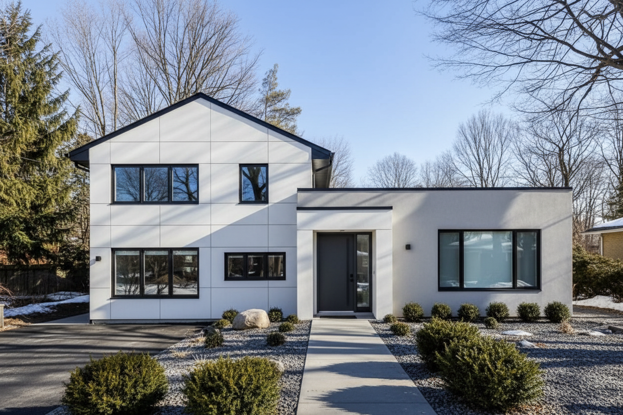 nel cornicione di copertura dell edificio aggiungi la grondaia perimetrale colore rame