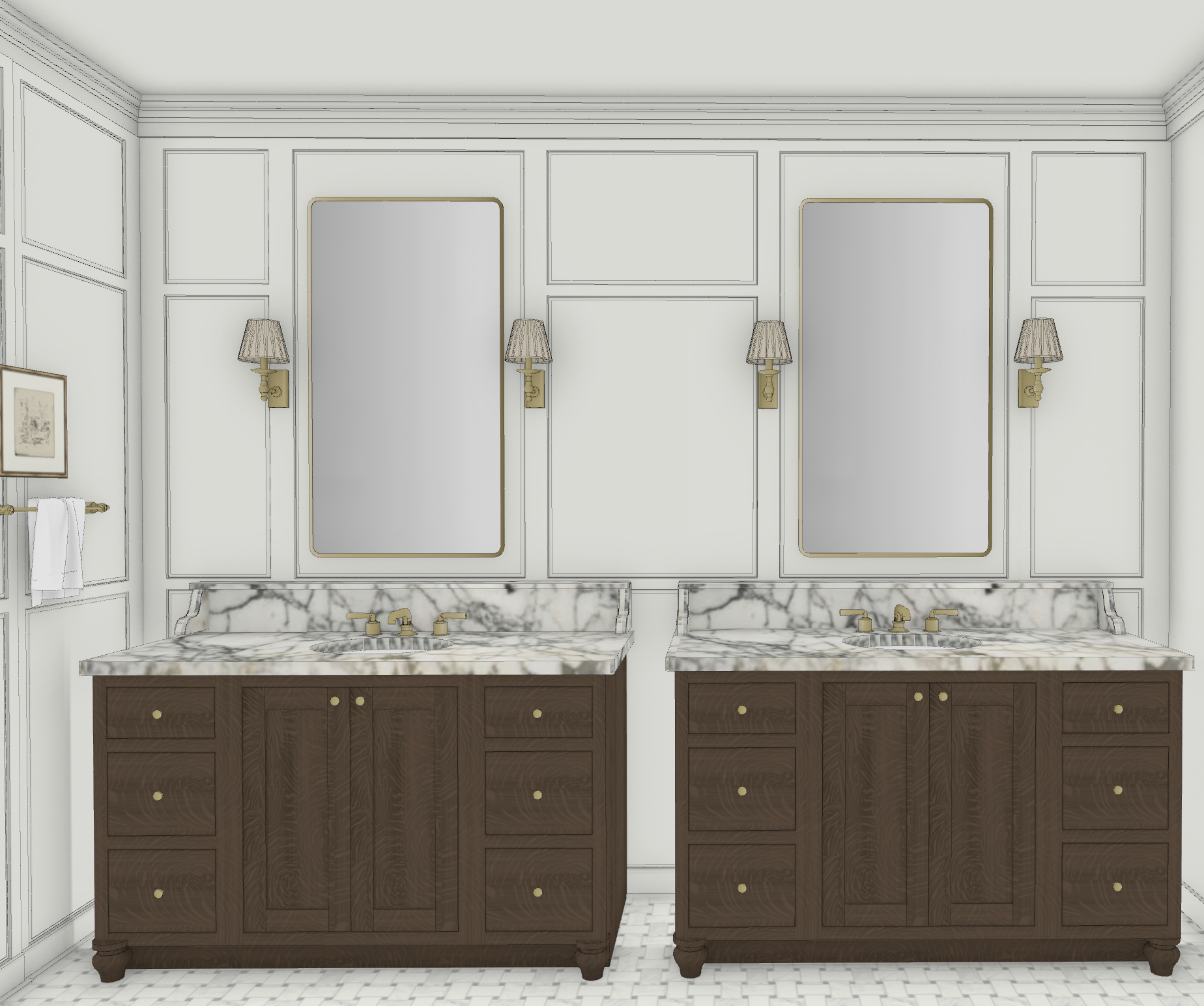 render this in a photo realistic wall enhancing the walls with white millwork floor to ceiling