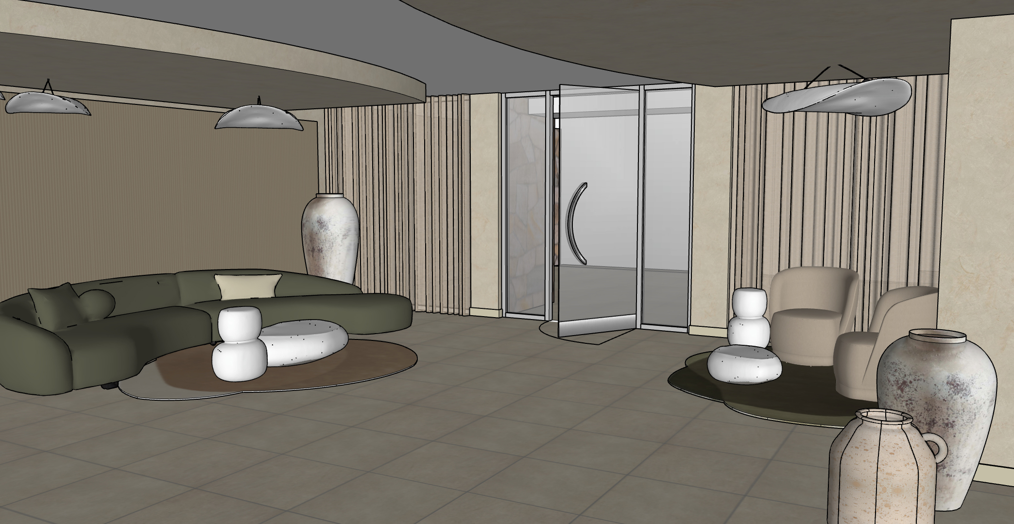 add photorealism while keeping your colors and materials unchanged add warm lighting creating a soft foyer atmosphere warm ambient lighting keep interior light and bright