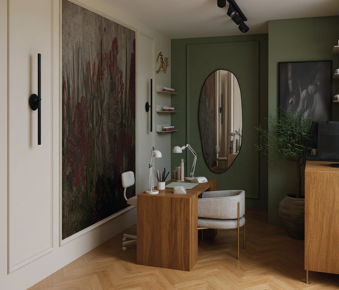 minimalism interior shot ultra realistic interior render of a modern minimalist apartment daytime lighting keep the full layout and proportions exactly as shown in the provided sketch model the floor is warm oak wood the overall color palette is light and calming white beige and soft neutrals dominate with touches of warm yellow tones that visually connect to the yellow sofa which remains the focal point of the living room the tv wall is entirely white with integrated white cabinets and subtle vertical white wood slats on the right above the coffee table add a sculptural modern chandelier minimal refined elegant matching the pendant light above the dining table next to the tv wall place the dining area featuring a round dining table with a light travertine top and a nearly white conical base around it use gala dining chairs soft grey suede upholstery with matte brass frames elegant and lightweight in appearance above the dining table suspend the modern spiral chandelier from image 4 on the tv side place a round white coffee table with a solid sculptural base as shown in the references decorate it with a ceramic vase containing yellow flowers a black candle holder and a minimalist decorative object to the left of the tv area add a light grey armchair as in image 3 with a soft curved form and cozy texture behind the yellow sofa install open wall shelves lightly decorated with books ceramics and greenery in subtle yellow or gold tones enough to add warmth but still keep a minimalist aesthetic the kitchen should match the photo reference 2 upper cabinets in realistic light oak veneer and lower cabinets in matte white with concealed handles the countertop and backsplash are made of smooth light stone bright and natural in tone near the dining table place a semi circular mirror on the wall exactly like in the model same size and ratio to its left a built in wardrobe with seamless doors add a few keys placed naturally on the entry shelf under the mirror curtains are elegant white and full height with sheer white drapes and discrete ceiling tracks sunlight softly enters through the windows casting warm highlights on the floor and furniture outside the windows show a modern city skyline viewed from the 7th floor bright and contemporary lighting temperature 3000 k warm white balanced with soft shadows and realistic reflections the overall atmosphere modern italian elegance minimalist serenity warm light and architectural precision photorealistic textures natural materials refined composition architecture