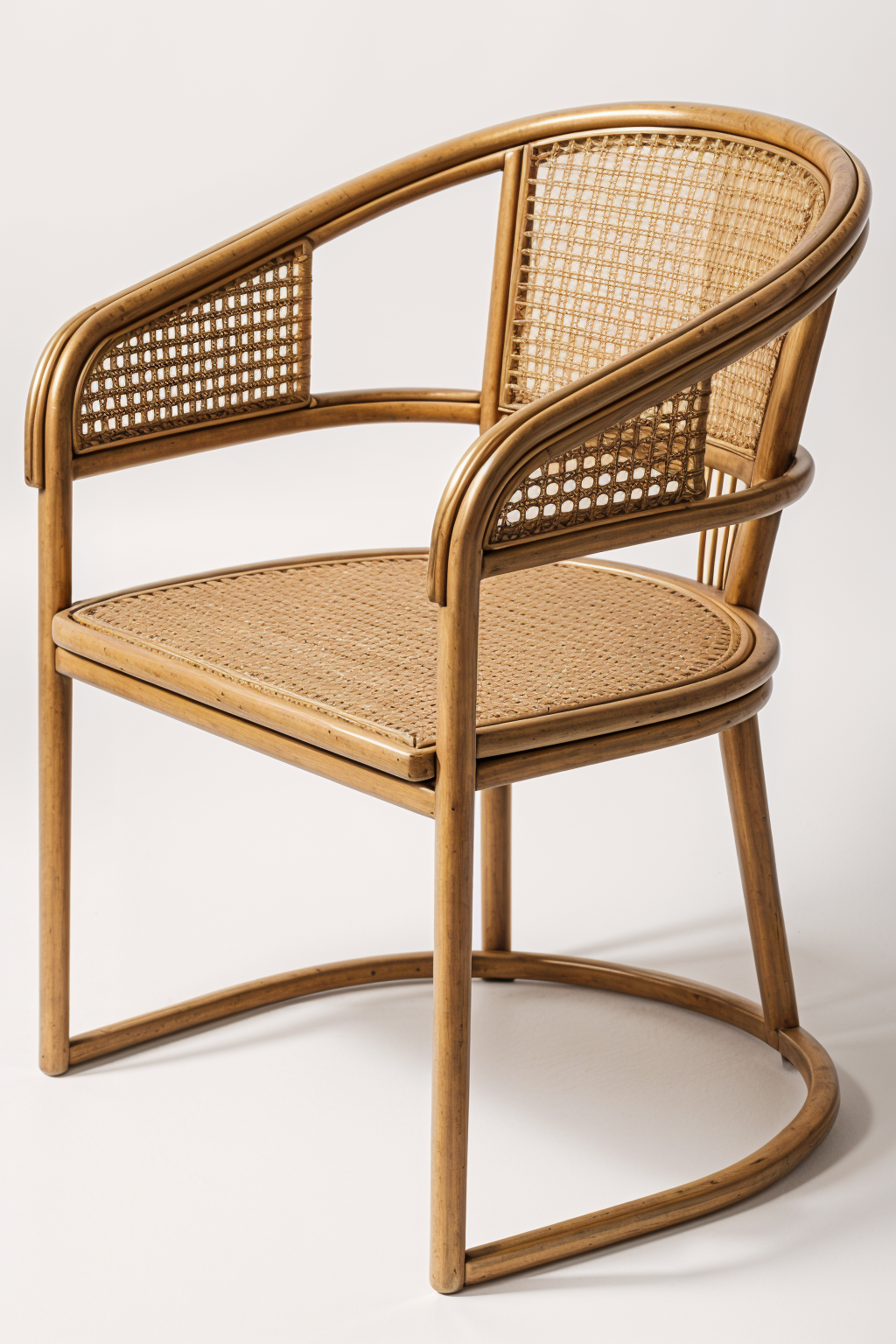 minimalism exterior shot accent rattan weaving back chair wooden legs wire brush finish upholstered seat architecture