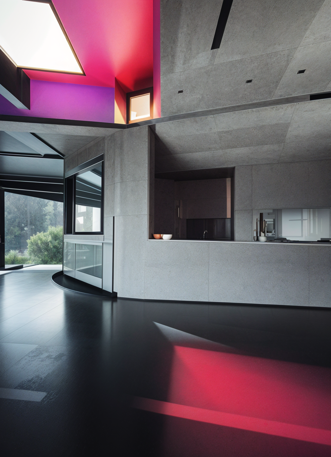 modernist exterior shot make white walls a colorful shingle gradient pattern architecture