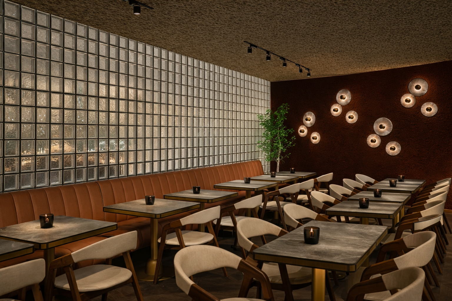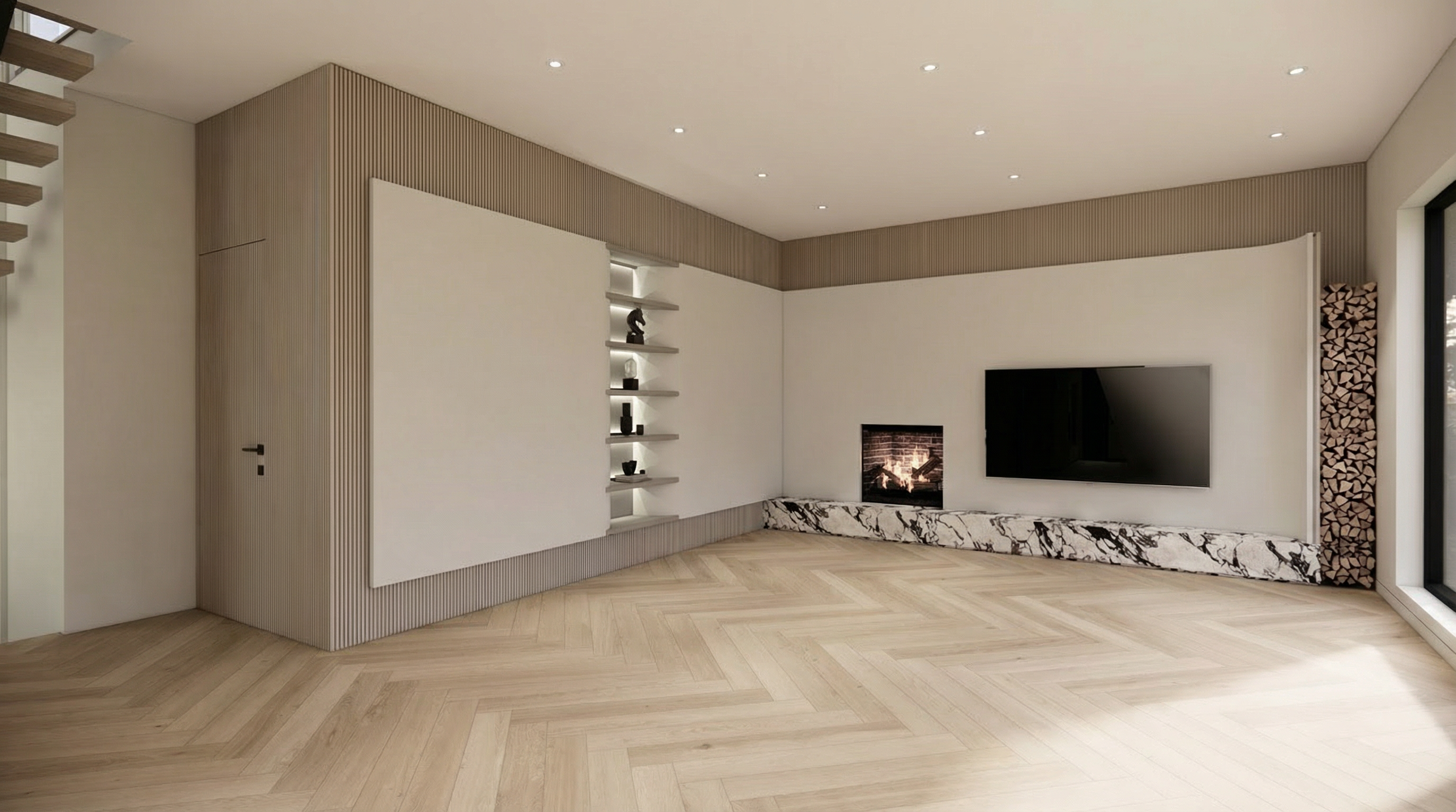 modern interior shot transform this into a realistic render respecting textures architecture