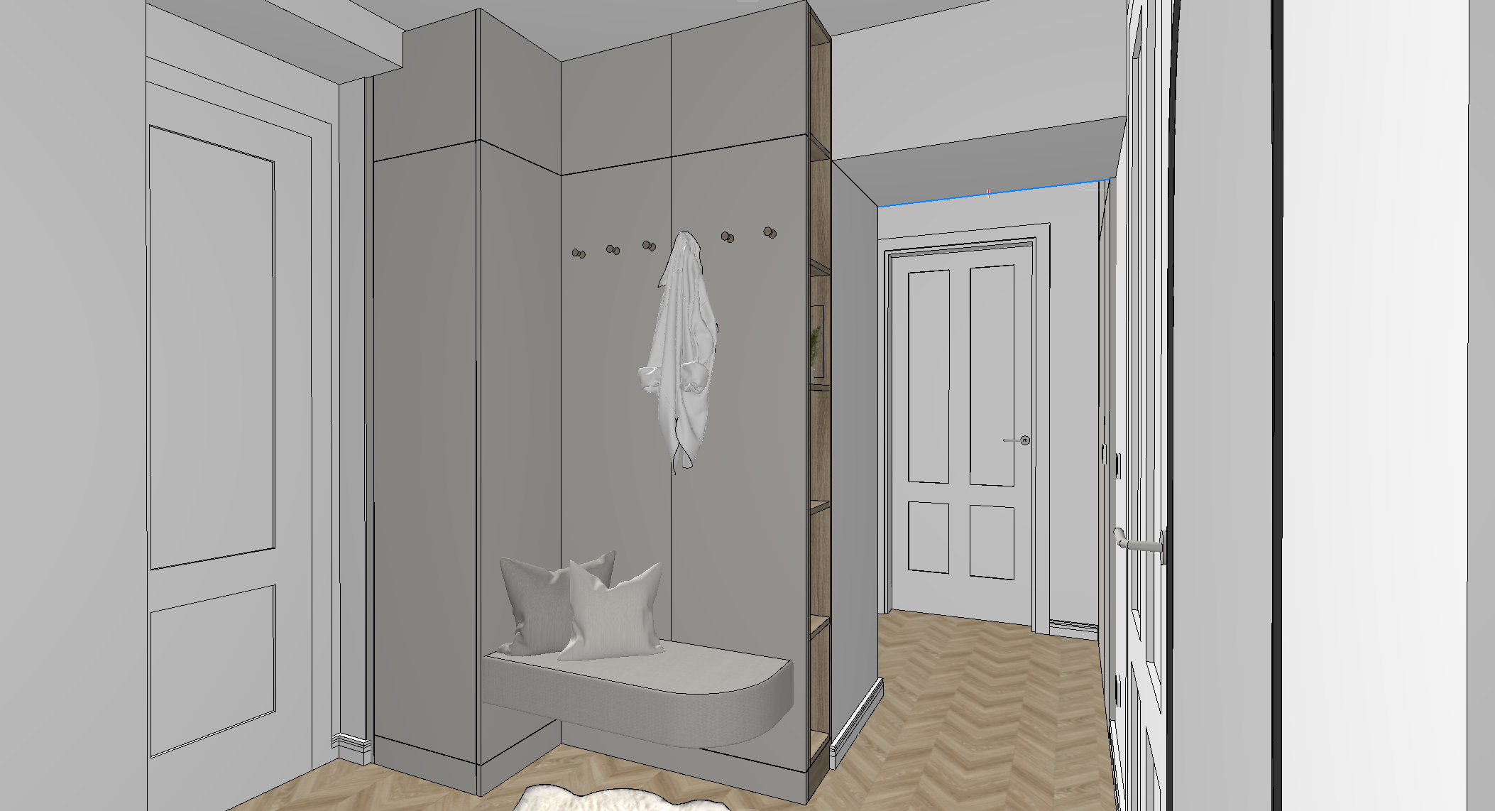 altbauwohnung in salzburg warme lichtstimmung ein wenig sonnenlicht von au en am fussboden einfallend fussboden und holz in heller eiche w nde und innent ren in wei schrank in hellem beige sitzbank in beigen boucle damenschuhe unter der sitzbank