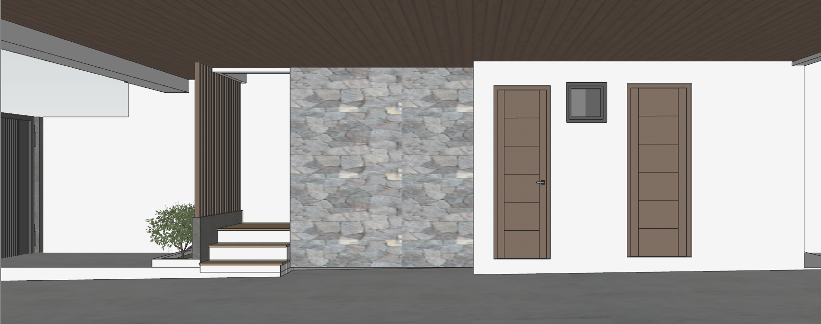 maintain model and colors gray stone finish daytime do not add any lighting fixture anymore remove glass panel at stairs