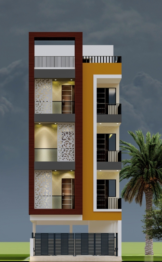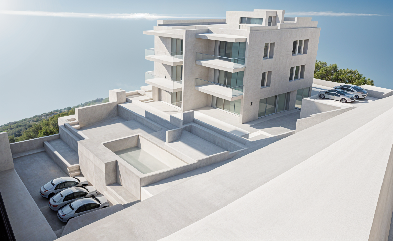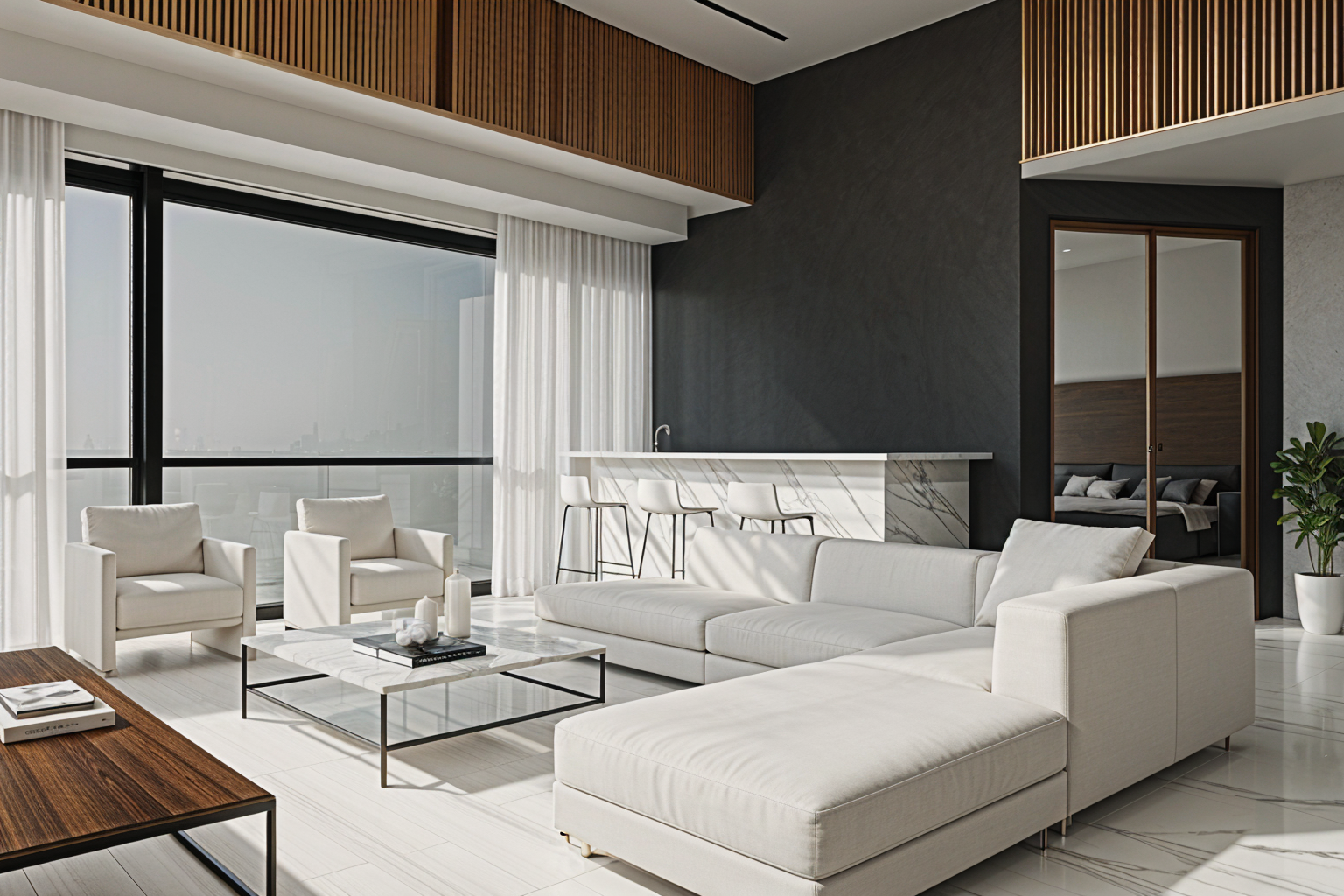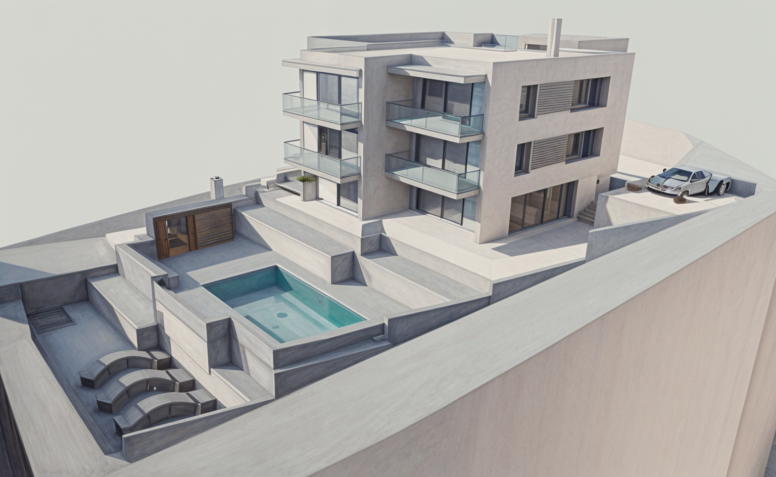 use contemporary colour and material and render the ambience with subtle sky and environment architecture