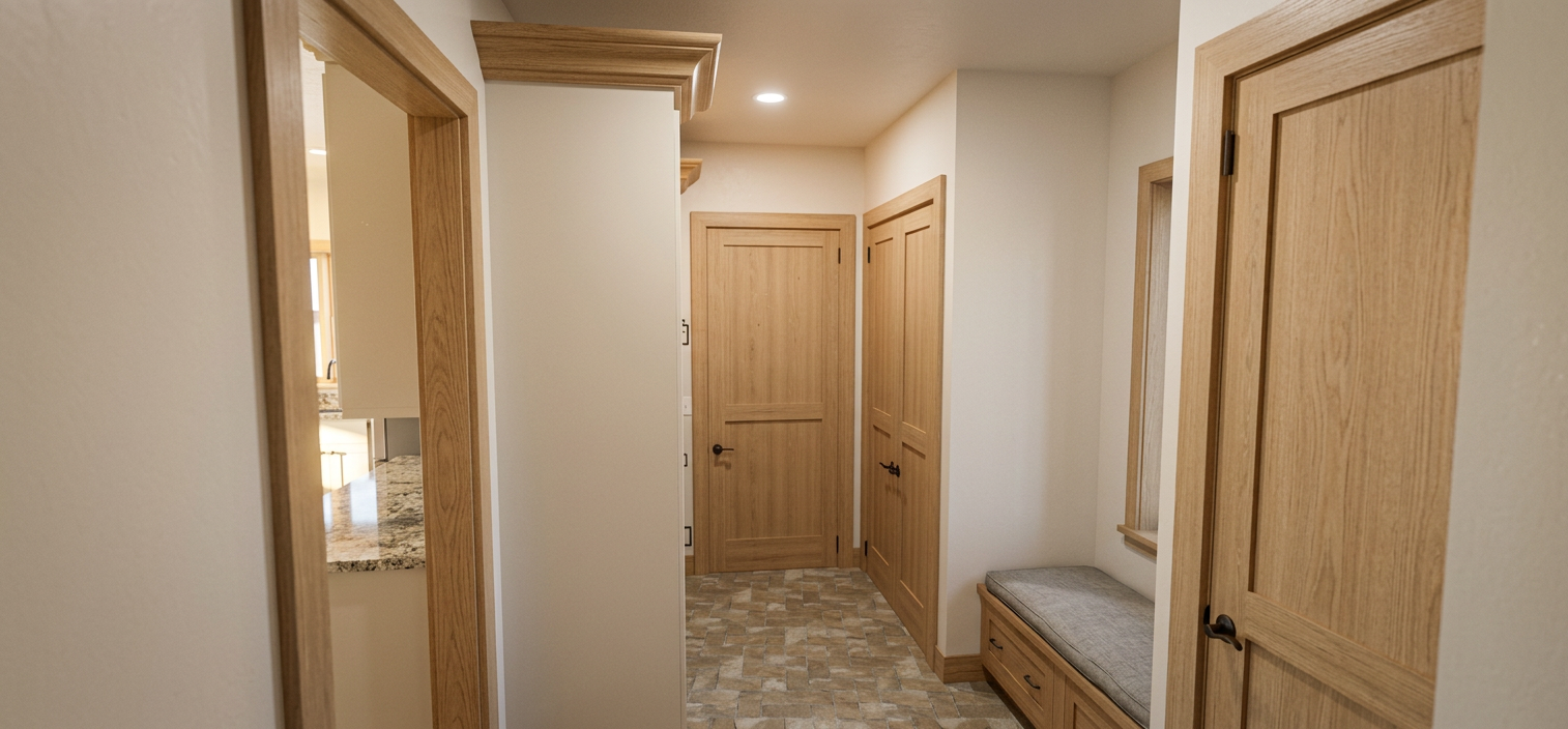 add some decor to the countertops and into the glass cabinets center the hood over the cooktop