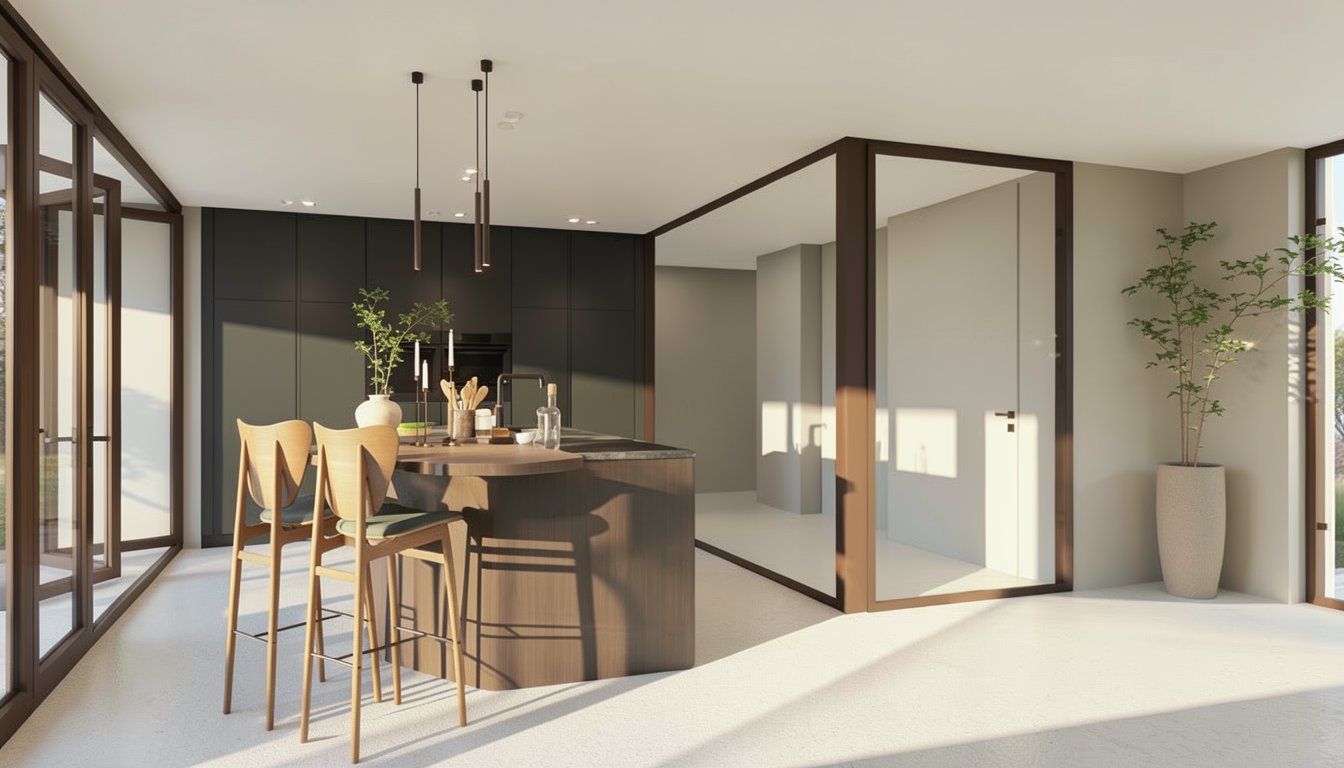 ultra photorealistic corona renderer style interior visualization architectural photography preserve original architecture preserve exact geometry preserve layout preserve furniture preserve materials realism enhancement only no redesign physical based rendering accurate global illumination ray tracing soft contact shadows ambient occlusion realistic light bounce color bleeding ultra realistic materials with correct pbr values realistic roughness subtle imperfections micro surface details fine texture depth natural material variation professional interior photography full frame camera 24mm lens correct exposure realistic dynamic range soft highlight rolloff natural daylight simulation realistic window light soft indirect lighting cinematic but natural balance corona renderer v ray unreal engine 5 quality 8k resolution ultra sharp extremely detailed photorealistic professional archviz architectural digest magazine quality no design change no new objects no new furniture no layout change no geometry change enhancement only preserve everything reduce the intensity of natural daylight entering the space decrease exterior brightness and window light exposure to create a softer more controlled interior lighting atmosphere prioritize warm ambient and artificial lighting from chandeliers and interior fixtures maintain balanced exposure with subtle shadows and a more intimate evening mood suitable for a luxury wedding restaurant do not change the architecture window positions layout or design elements adjust lighting only remove the christmas tree and the presents under the tree