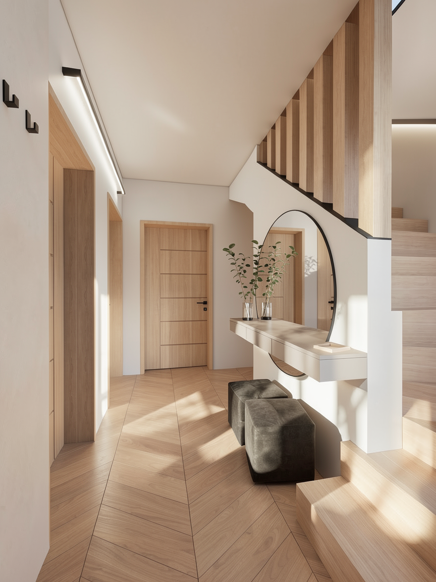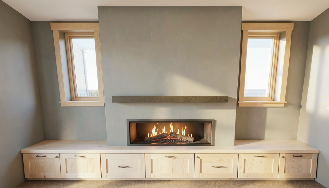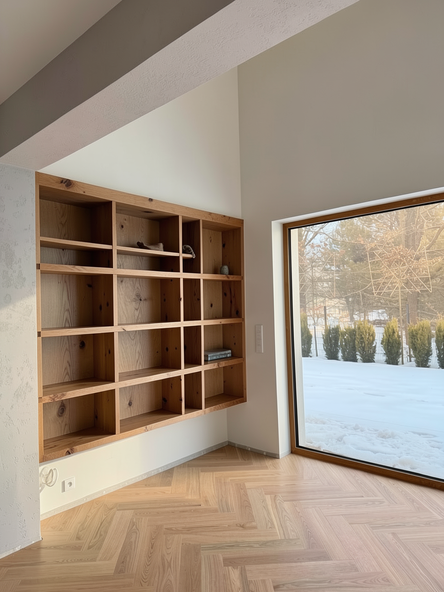 add wodden shelves irregular with open and close space on the bottom make line of drawers