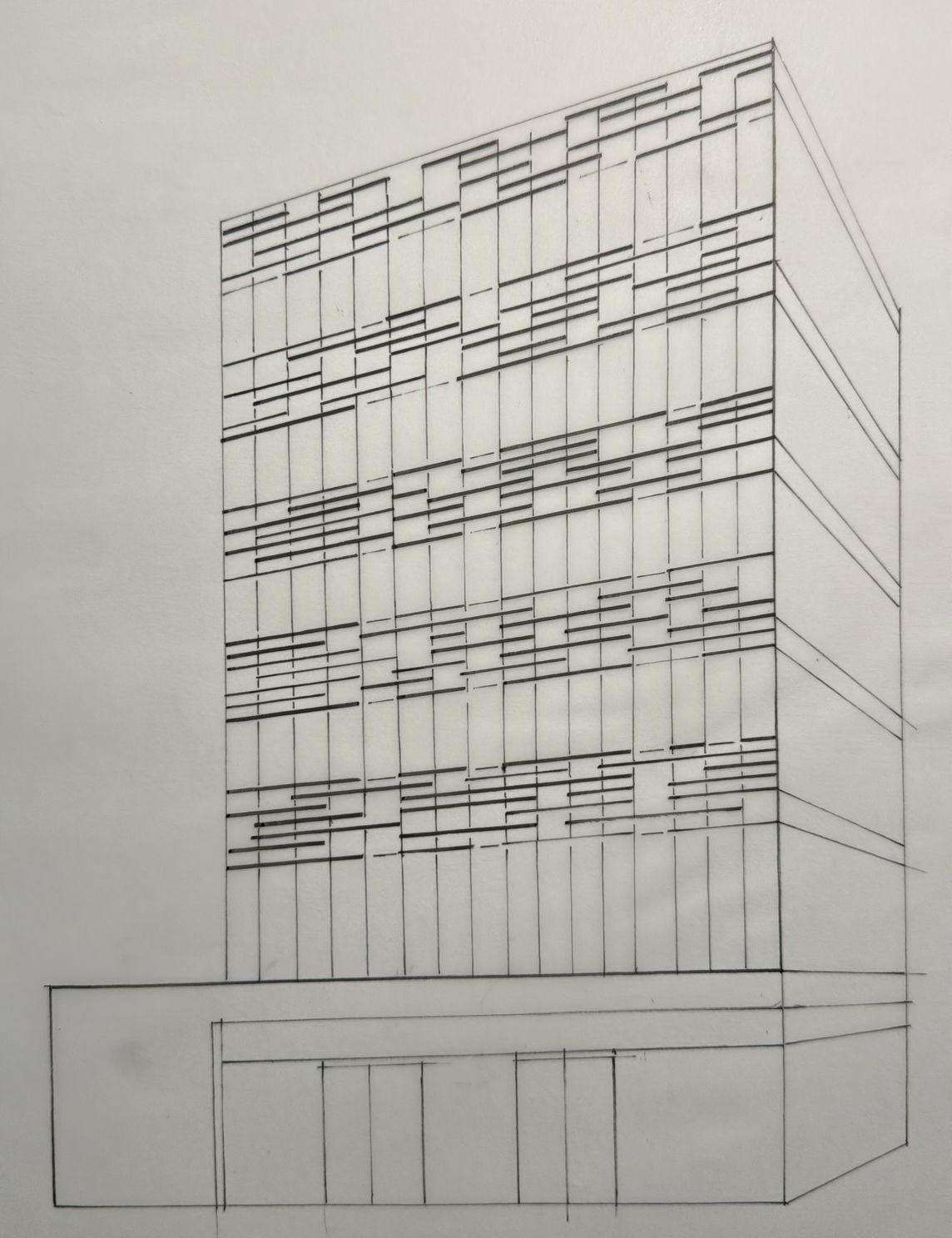horizontal lines as 30 cm shading plate on a silicon glass facade architecture