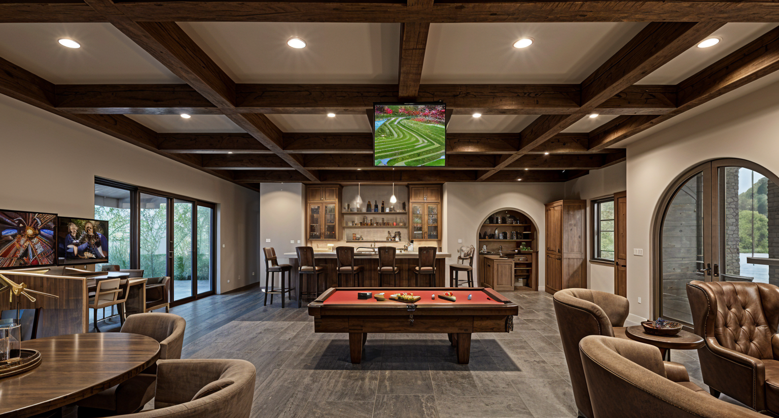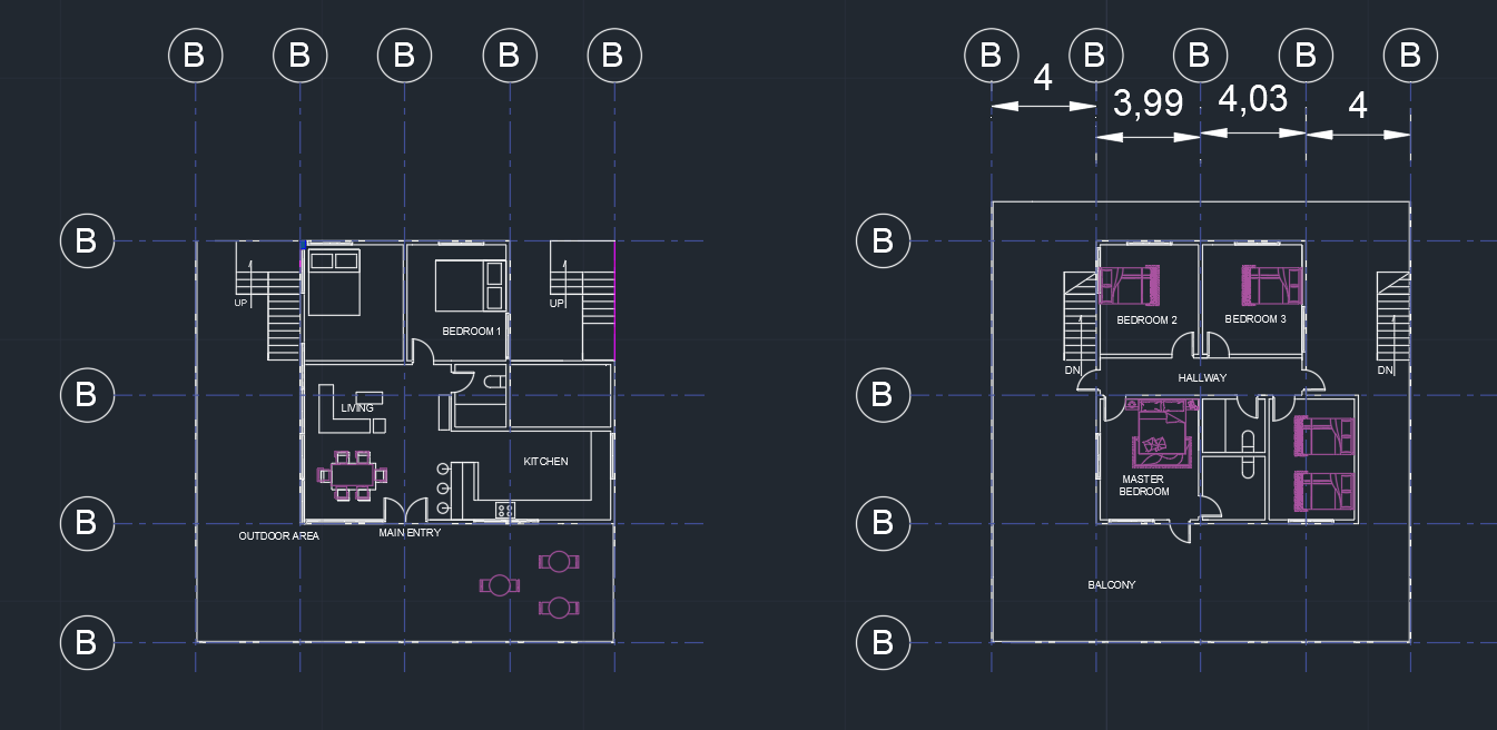 convert this floor plan into a architectural isometric 3d view of a full house show the space from an elevated angle with furniture walls and details visible make a realistic render of a two storey modern asian rest house with wide balconies on gorund and second floor use the same furniture as shows on the plan do not change the orientation of the floorplan