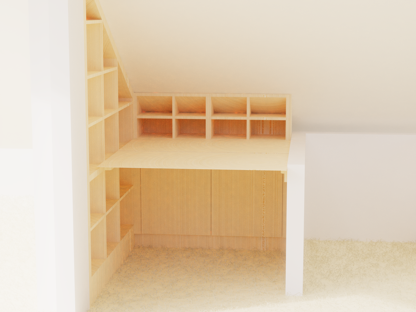 light tone birch plywood loft storage add some art and craft supplies on the shelves