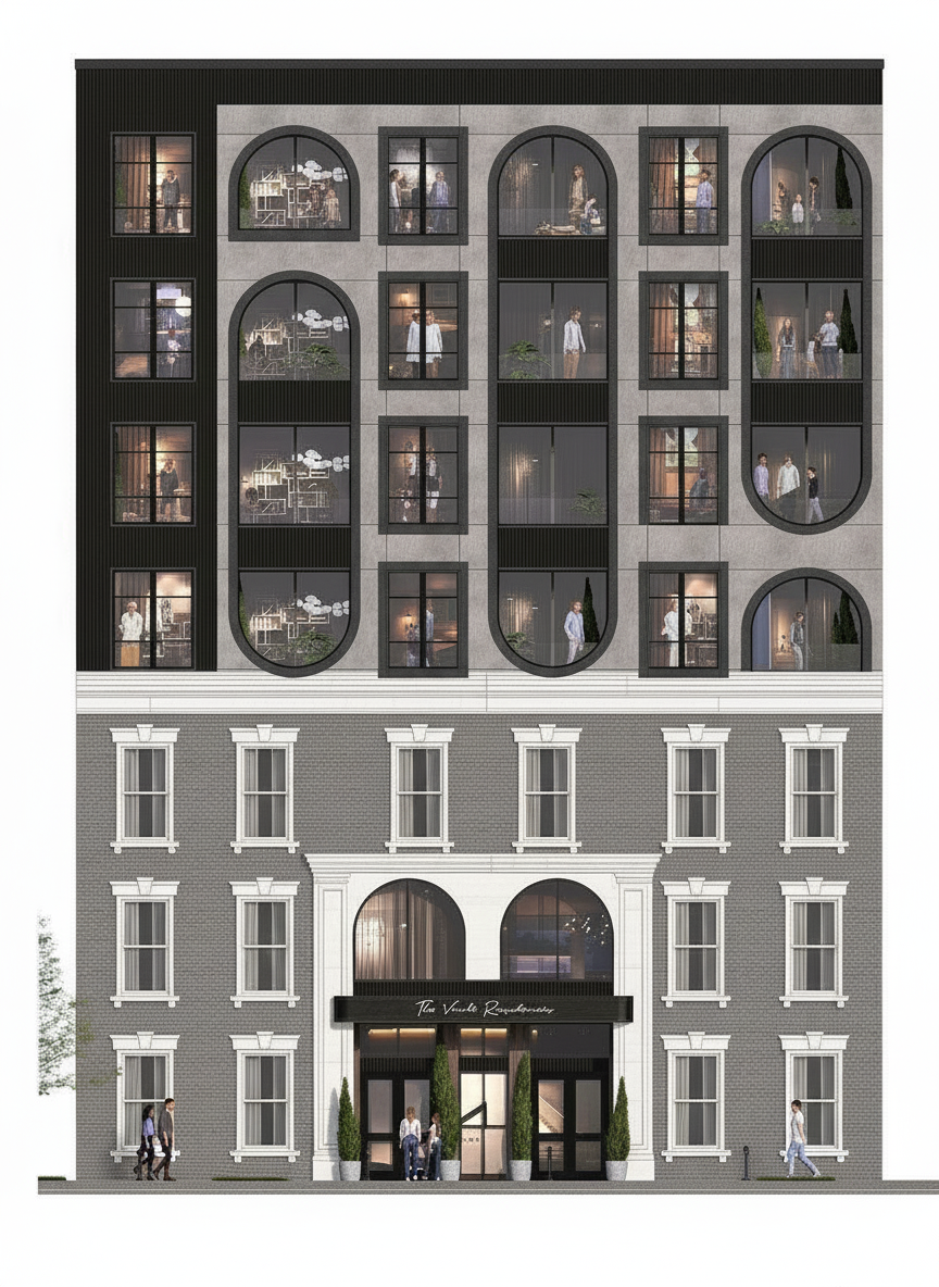generate beautiful elevations renders with furniture and light inside top down from above with sunlight at dusk