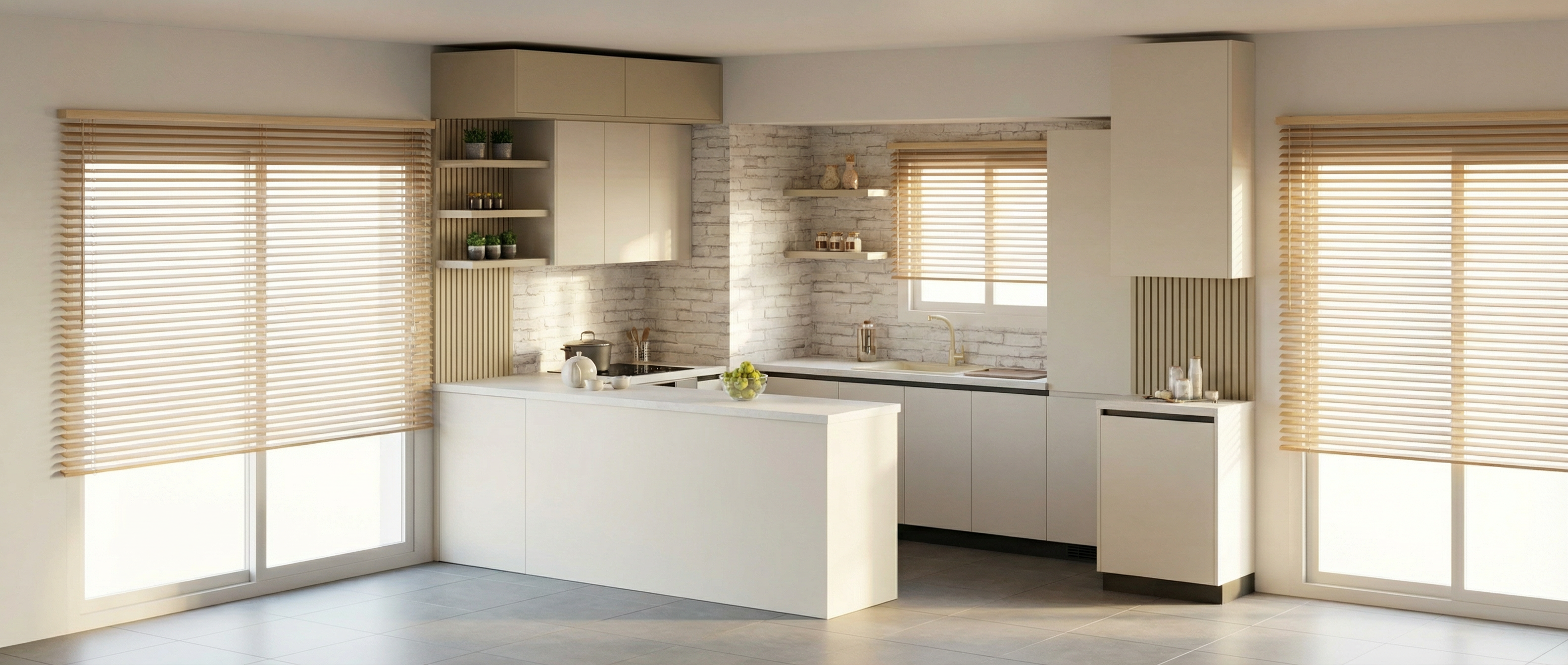 render a photorealistic 3d image of this bathroom with terracotta tile a glass partition at the shower and brass hardware