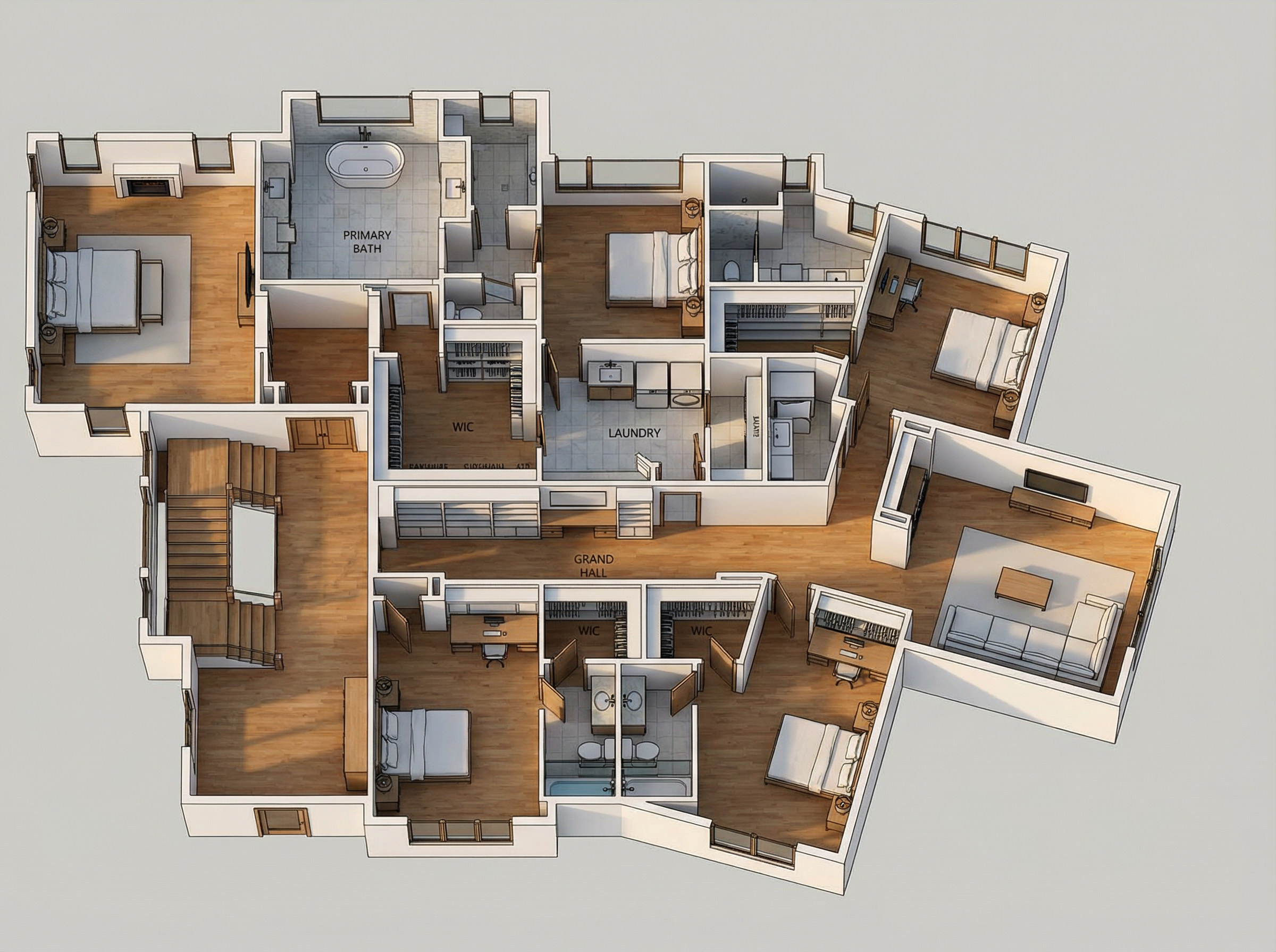a manicured lawn layered flower beds low maintenance shrubs native plants stone pathway leading to the entrance