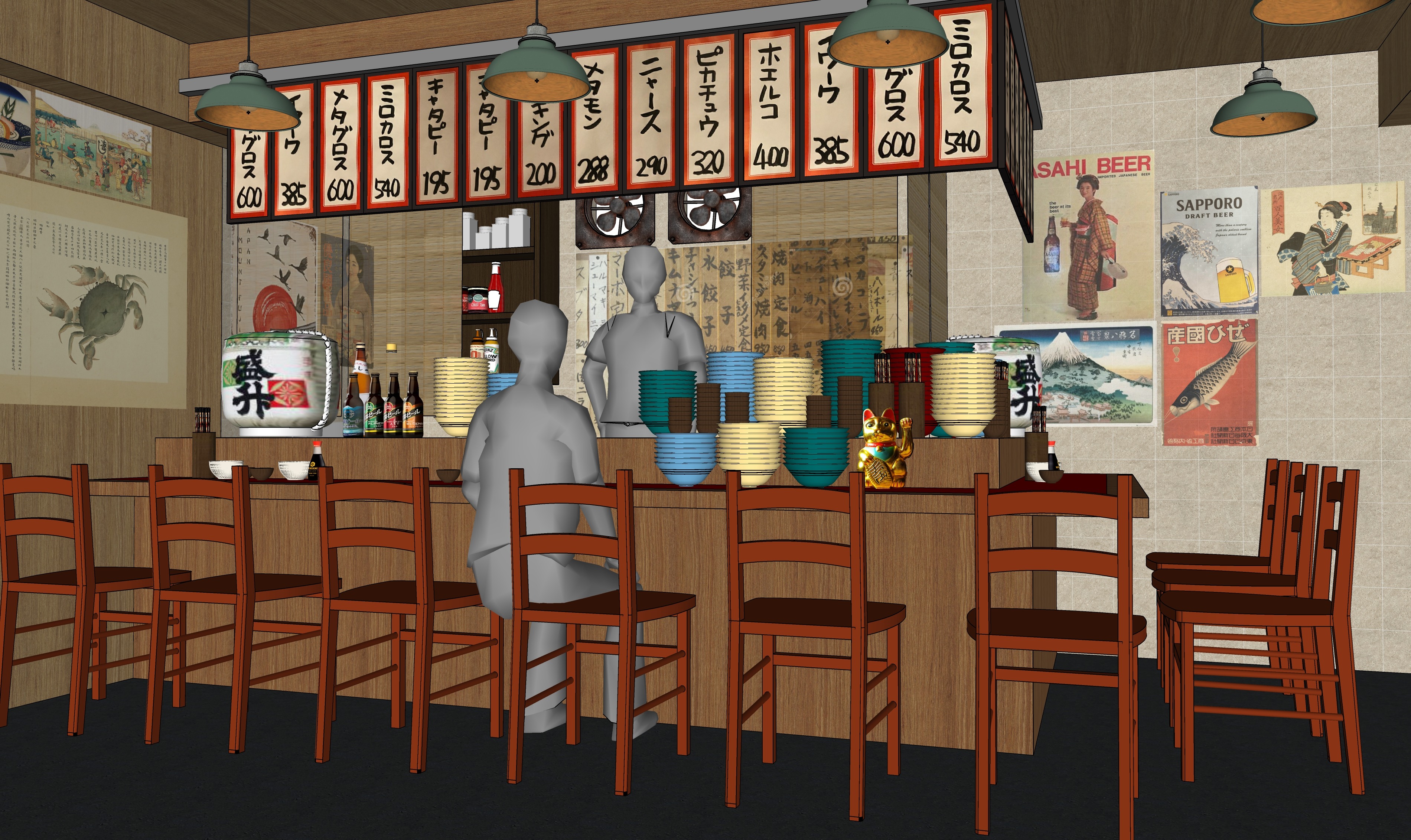 transform the provided japanese izakaya interior image into a high end photorealistic render remove all people