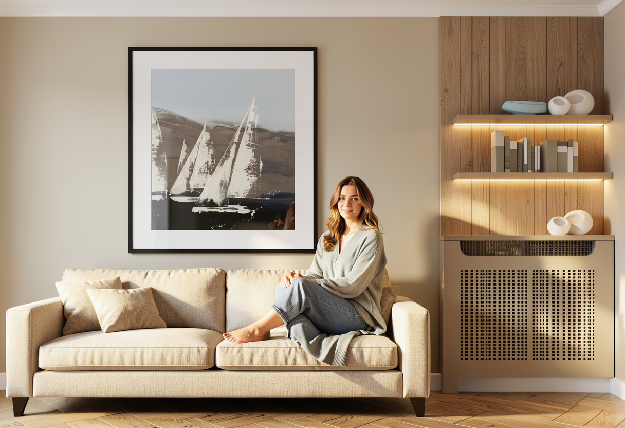 add a woman sits on the sofa