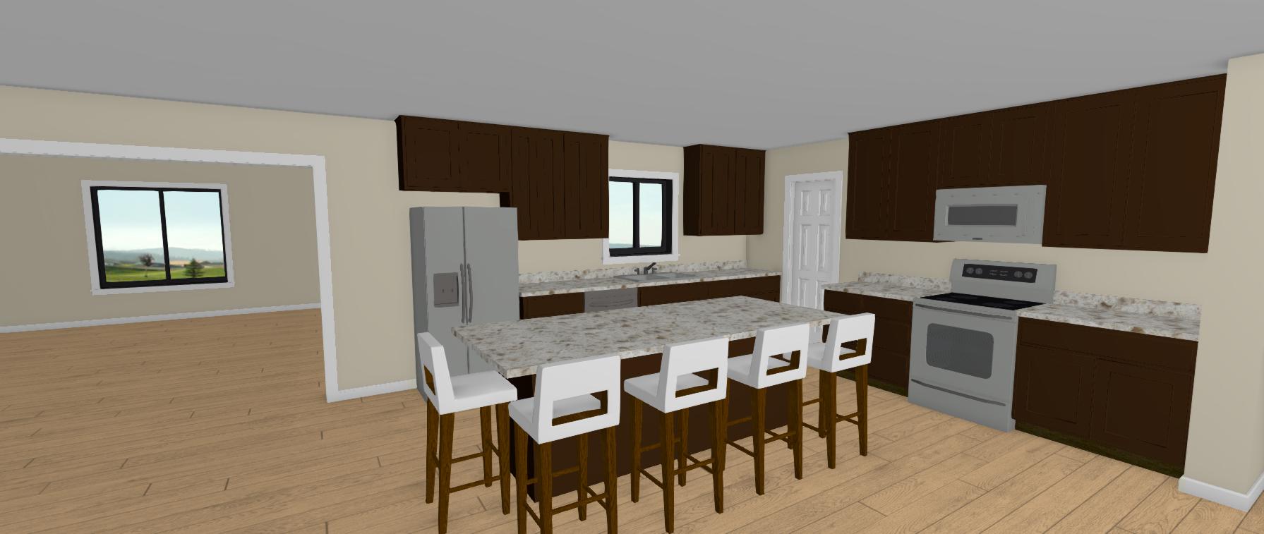 make photorealistic indoor scene with recessed can lighting in kitchen ceiling