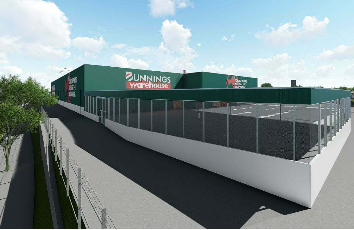 modernist exterior shot create a vivid and detailed rendering of a large modern warehouse store the building is primarily green contrasted with a warm earthy tone on the roof the foreground features a bustling parking lot with various vehicles blending shades of asphalt gray and metallic hues the overall atmosphere is vibrant and inviting bathed in the golden glow of late afternoon sunlight casting soft shadows and adding depth to the scene lush greenery surrounds the building adding splashes of natural greens against the structure architecture