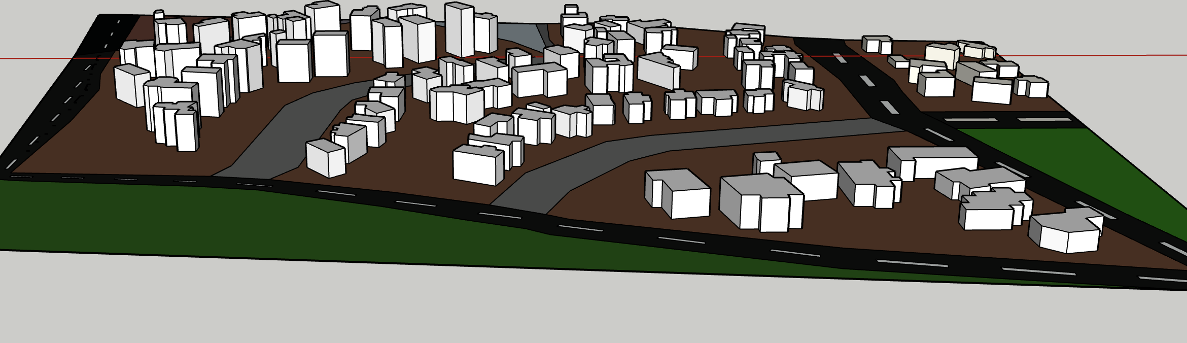 modernist exterior shot create a stunning aerial rendering of a small modern cityscape the buildings are sleek and minimalist in shades of white and light grey capturing sunlight and casting gentle shadows the roads a dark charcoal grey weave through the landscape bordered by rich earthy brown terrain the atmosphere is serene and bright with a clear blue sky and soft natural lighting illuminating the scene lush green trees dot the landscape adding vibrant pops of color for a harmonious balance the atmosphere is serene and slightly overcast with soft diffused lighting creating a cozy and inviting ambiance the atmosphere should be bright and clear evoking a sense of tranquility and balance this is a newly introduced road designed to establish a clear internal access structure within the development the area in front of the road is designated as a coastal restoration zone pls emphasis strategic roads the right part of green space is park surrouned area is land and residential area as well architecture