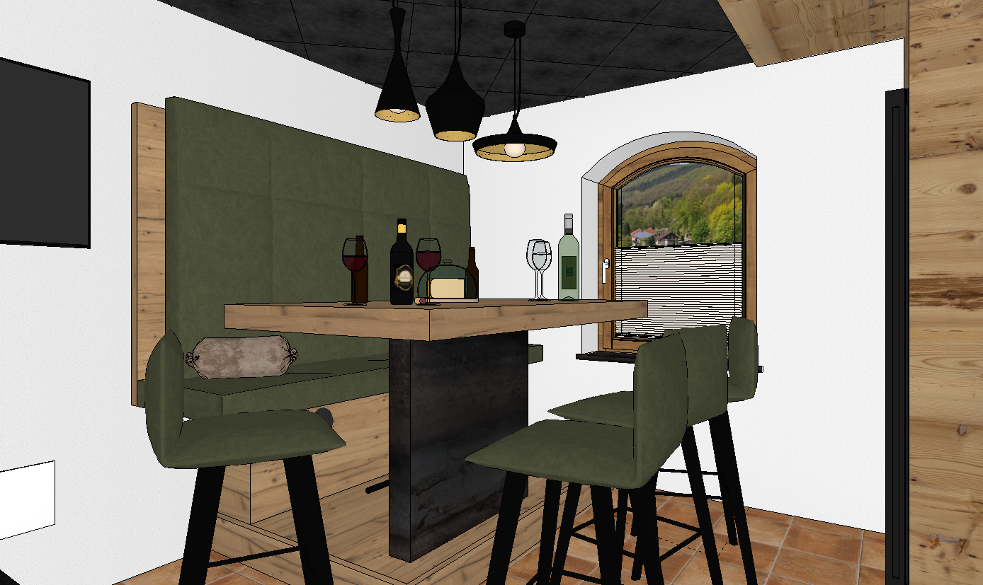 fabrics is made out of leather in olive green add indirect lightening behind the bench