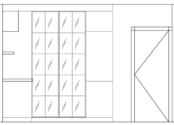 kitchen back wall mirrored antique glass sliding door panels with black frames blue grey units same as last image light marble counter top and splash back